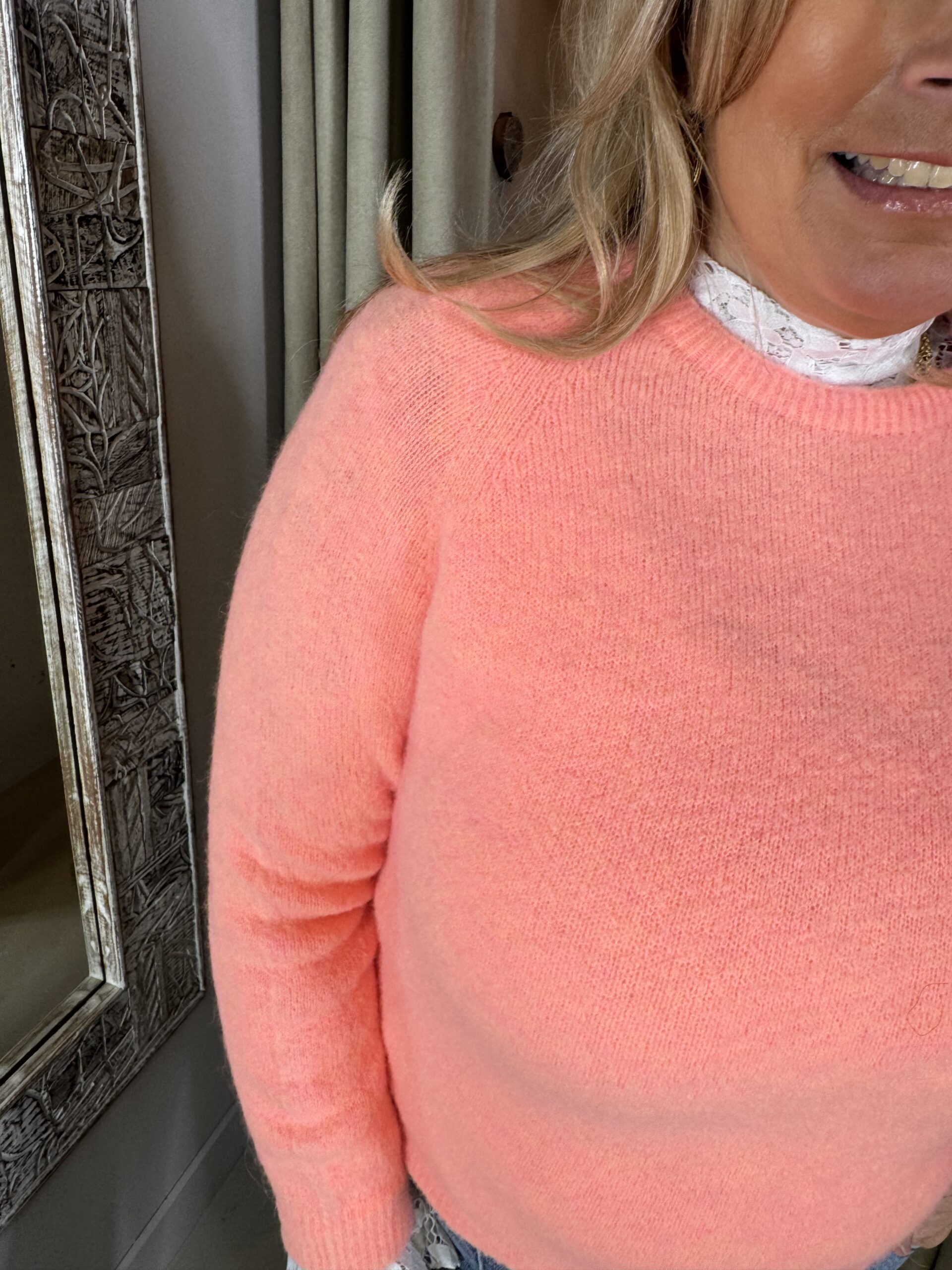 Alpaca Blend Knit Aivy Licht Koraal is de de perfecte trui in een alpaca blend en precies wat je nodig hebt.