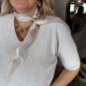 Alpaca Trui Cherine T24 met Sjaaltje Zand is een leuke, hele zachte v-hals trui met korte mouwen trui in een mooie alpaca mix