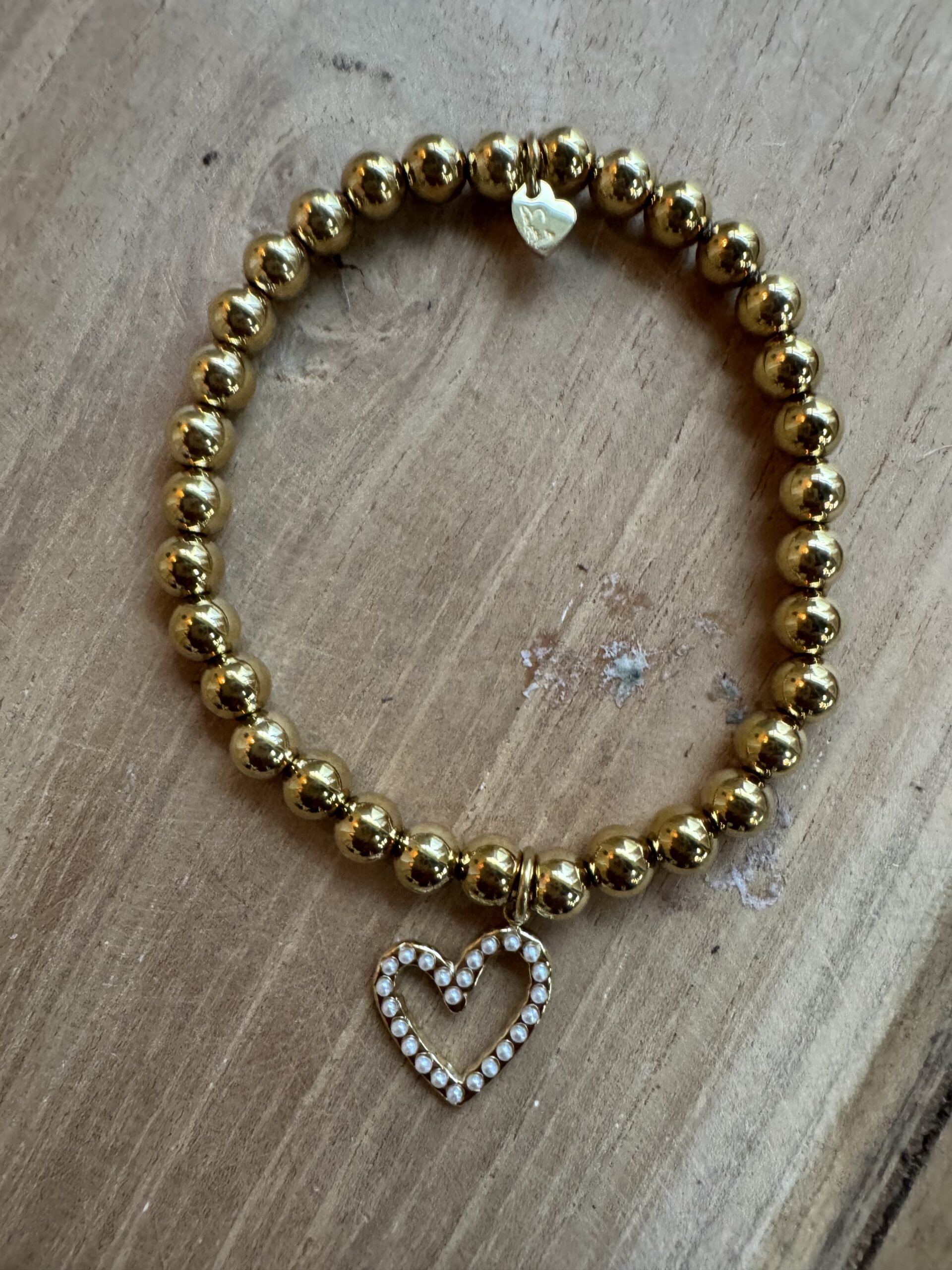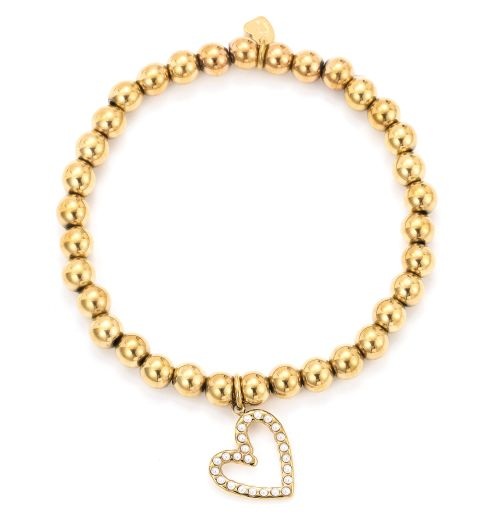 Hoe leuk is deze elastische gouden RVS armband met eenhartjes medaillon, waar je een foto in kunt doen!