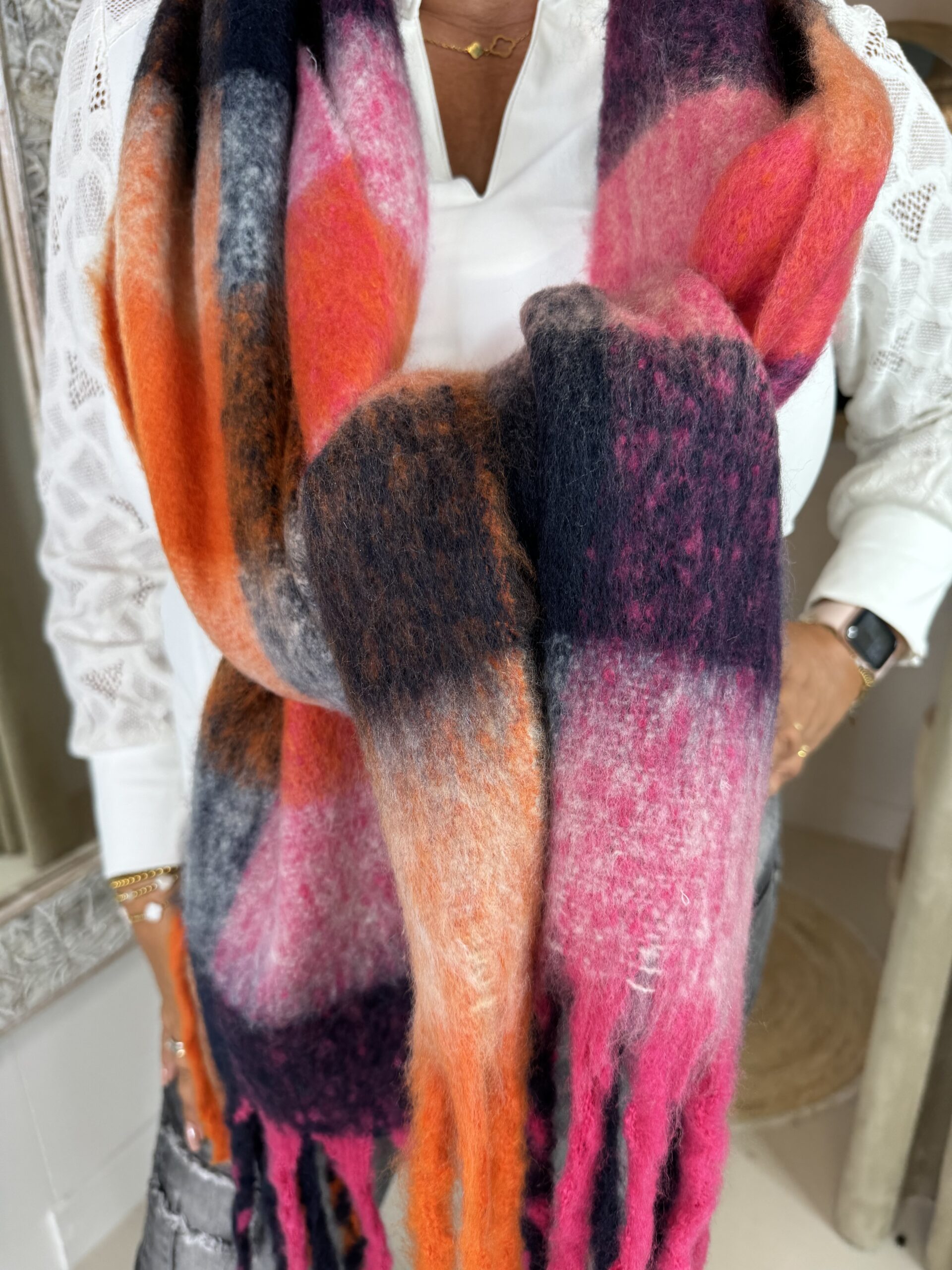 Dit is een heerlijke warme, zachte sjaal met slierten.