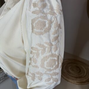 Blouse Streep 65312 Geborduurde Mouw Zand heeft een mooi borduursel op de mouw in een bijpassende kleur