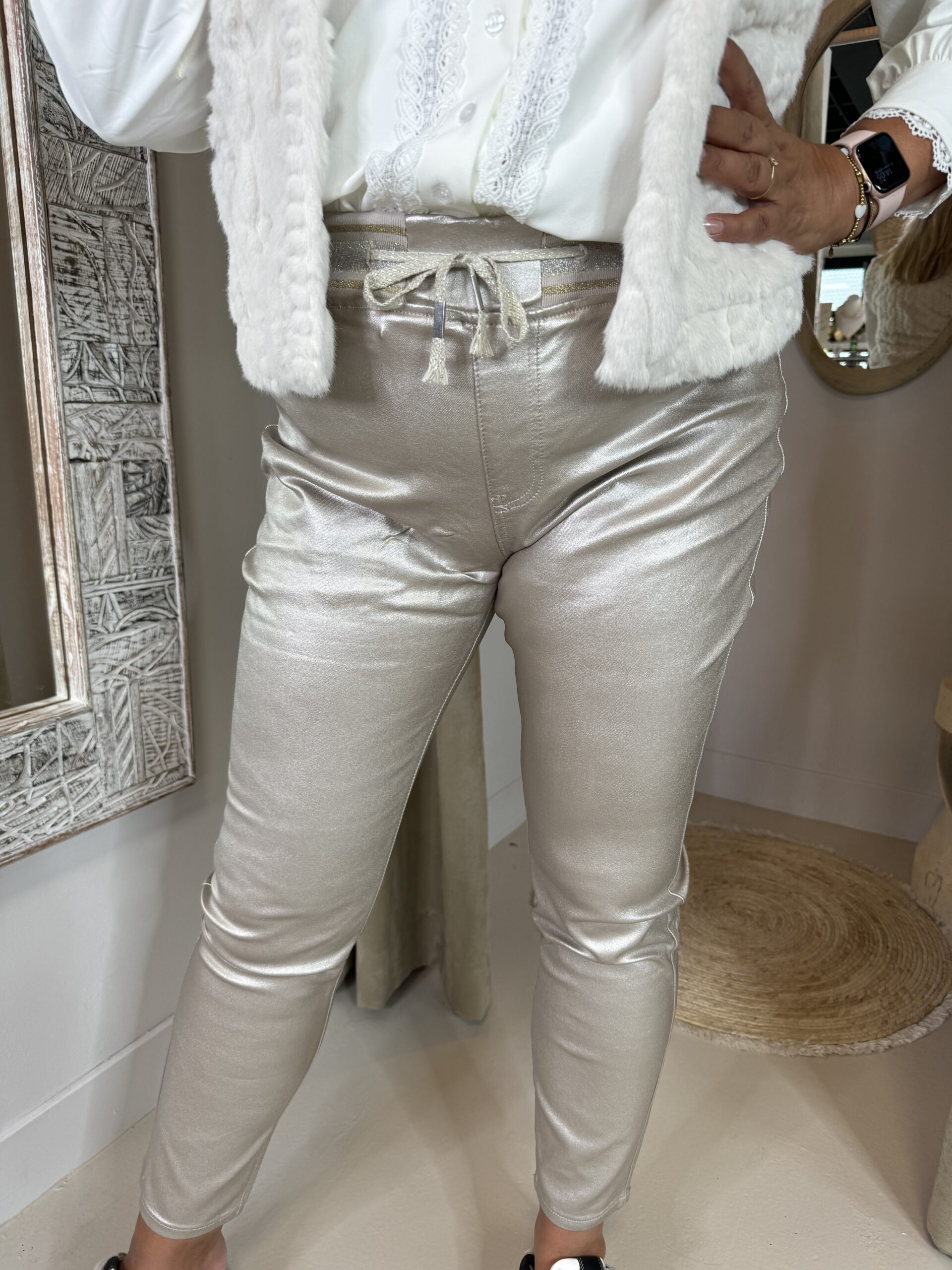 Hij heeft een sportieve mooie glitter tailleband met een koord!