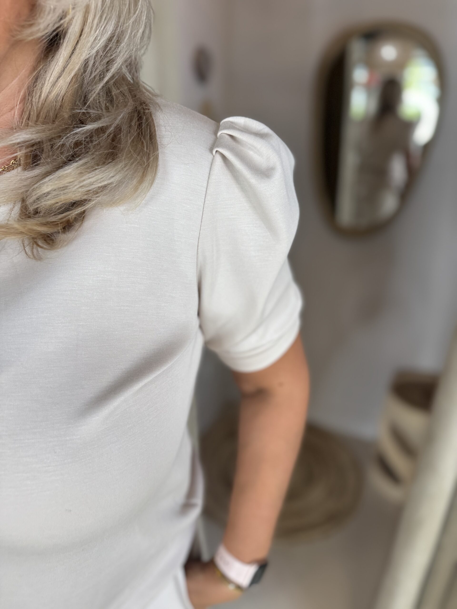 Een heerlijke comfortabele set die bestaat uit een leuke top met pofmouw en een makkelijke korte broek