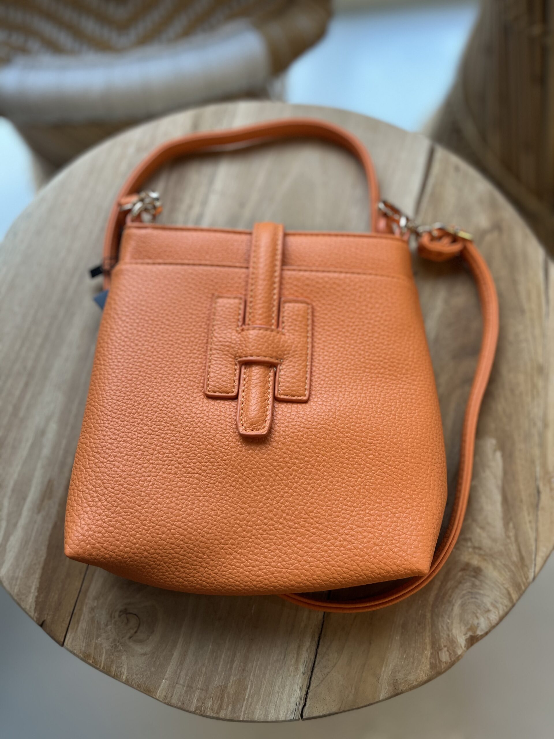 Deze Crossbody Tas 20169 Met H-Gespdetail- Pu Leer Oranje is zo’n item dat je elke dag wilt pakken
