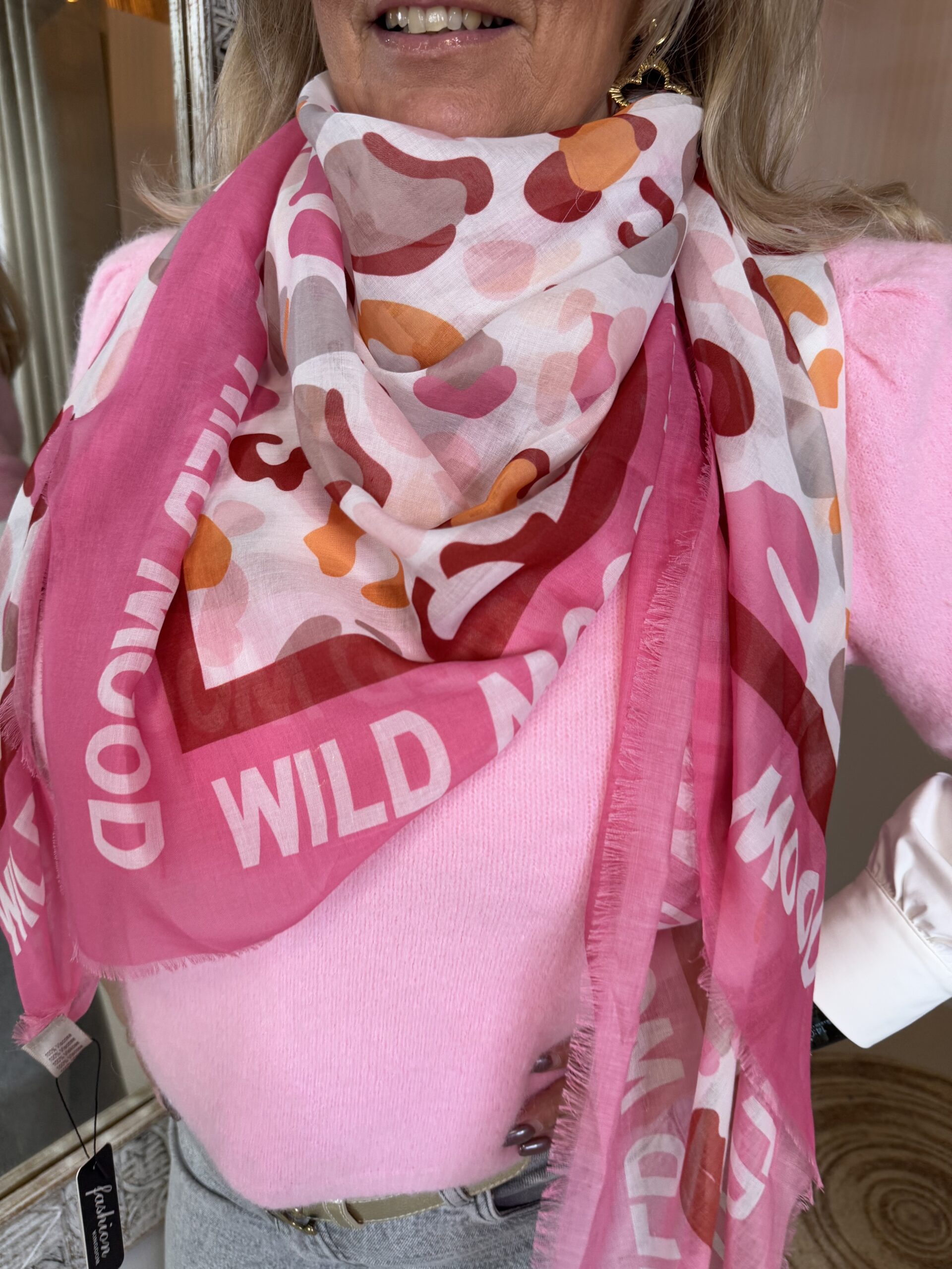 Deze wat dunnere sjaal combineer je met een truitje, blouse of bij je (leatherlook) jasje