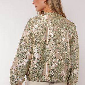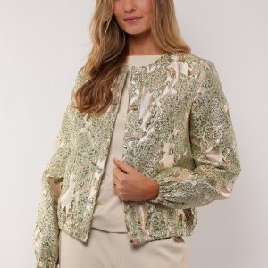 Het G-Maxx Dalia Jacket Light Moss/Sand is een luxe statement piece met een moderne uitstraling. Het jacquard geweven dessin met metallic accenten geeft het jasje een rijke, vrouwelijke look, terwijl de bomberachtige snit zorgt voor een eigentijdse balans. Dankzij de ronde hals en elastische boorden is dit jacket stijlvol én comfortabel.