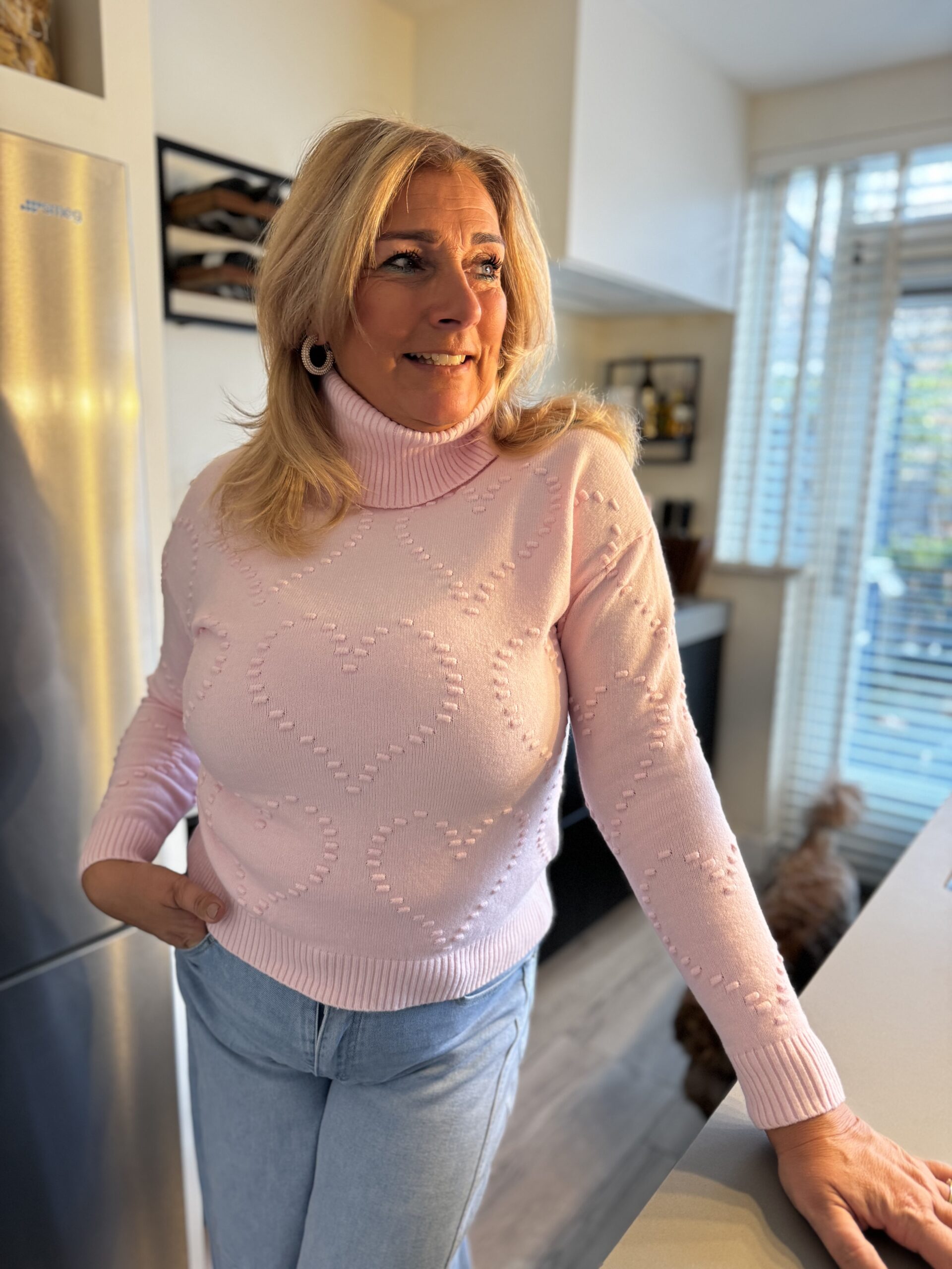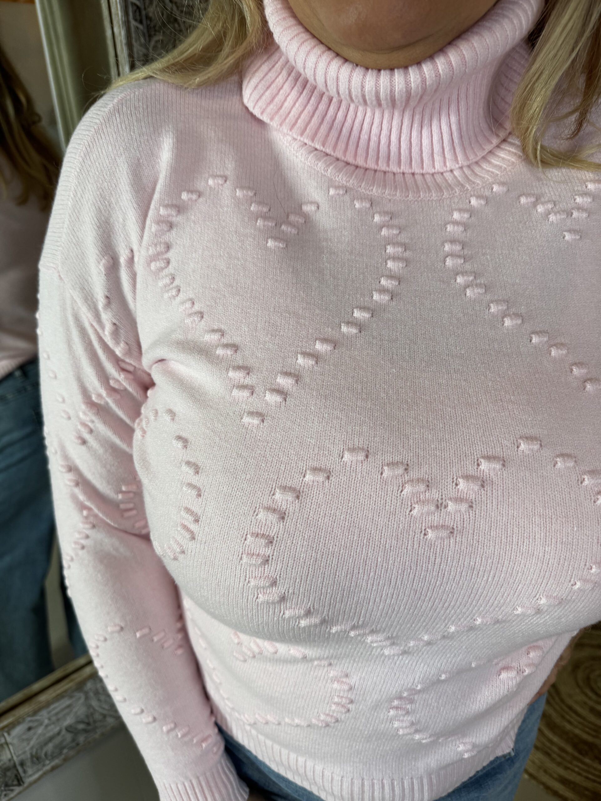 Deze Gebreide Coltrui 9671 met Hartjes Effect Roze voor dames is gemaakt in een heerlijk zacht breisel.