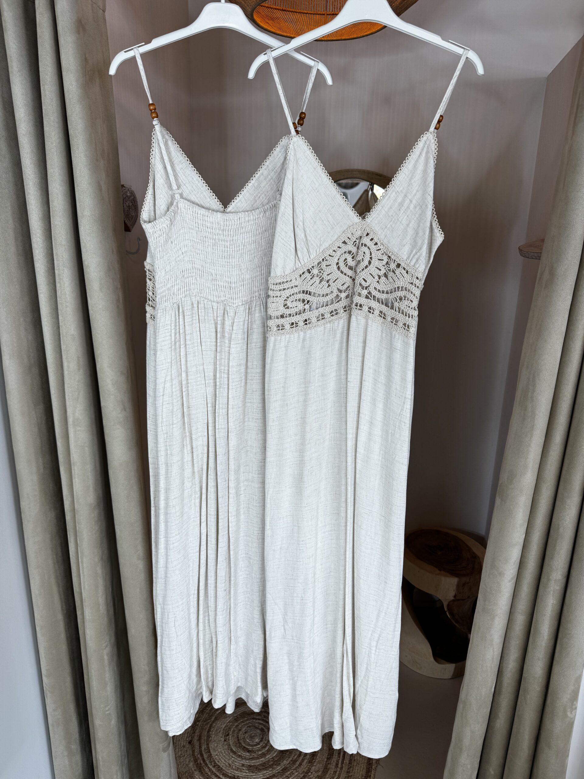 Hij is gemaakt van een linnen viscose mix en heeft mooie kanten details