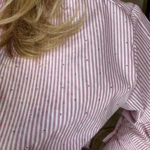 Katoenen Blouse 112858 Streep met Studs Roze