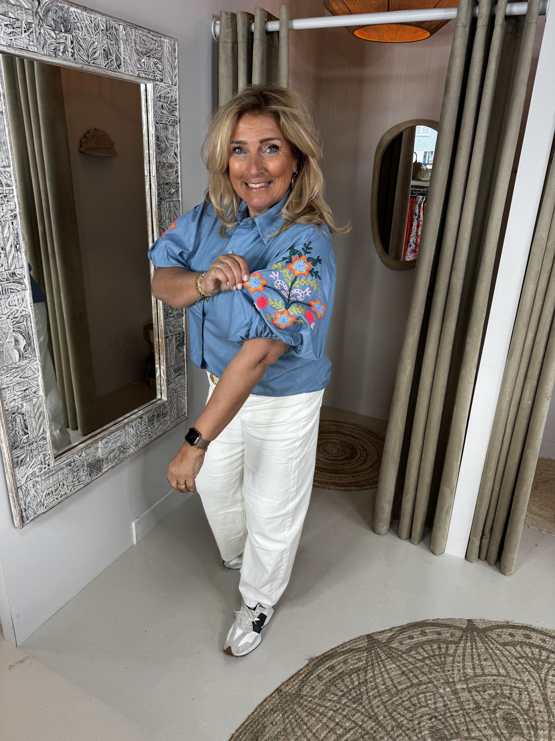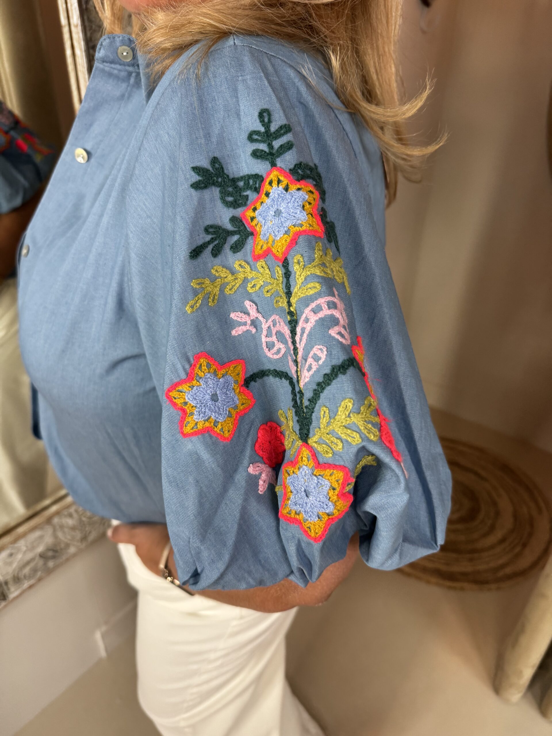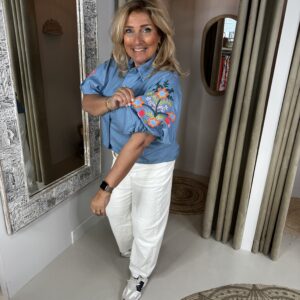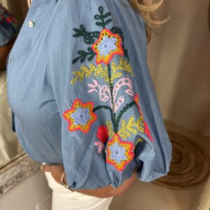 Deze heeft mooie borduursels op de leuke ballon mouwen