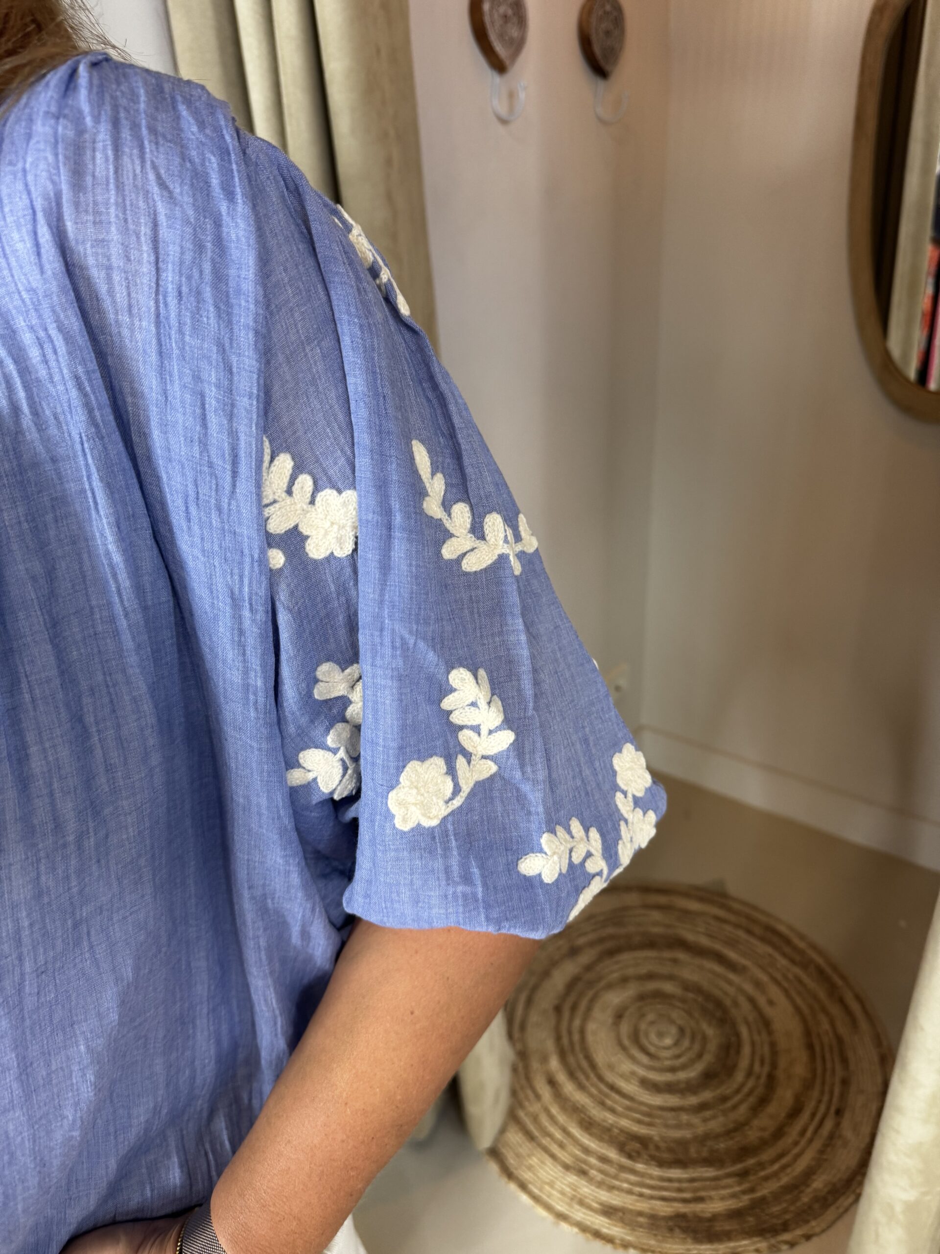 Katoenen Blouse Mara 731 Jeans Blauw is ook weer zo’n schattige, tijdloze katoenen blouse met leuke details op de mouwen, lekker zomers