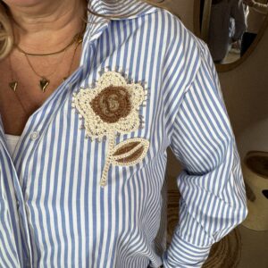 Katoenen Blouse Streep19798 Blauw Wit Bloem