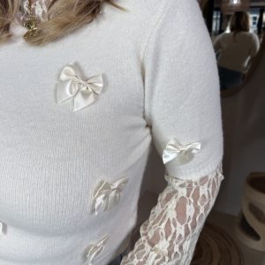 Korte Mouw Trui 1081 Met Strikjes Licht Blauw is een leuke korte mouwen trui in een fijne viscose mix