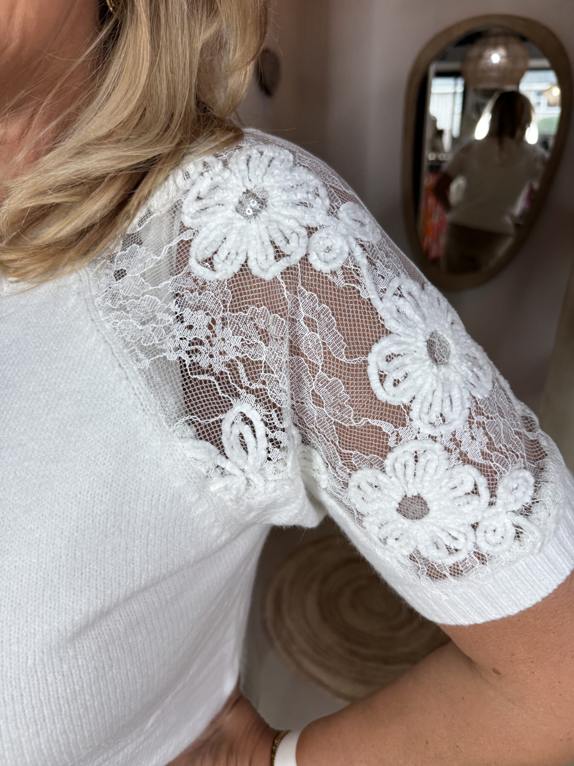 Korte Mouw Trui Kanten Schouder YP2052 Off-White