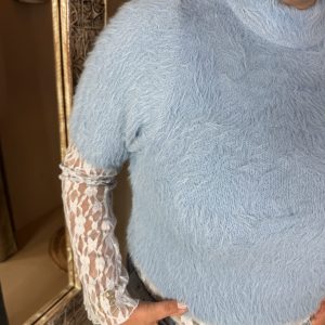 Korte Mouw Trui Soft Viscose 869 Licht Blauw is een leuke korte mouwen trui in een mooie zachte fluffy viscose mix