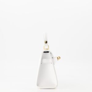 tas heeft op de voorkant een draaisluiting en is afgewerkt met goudkleurige hardware.