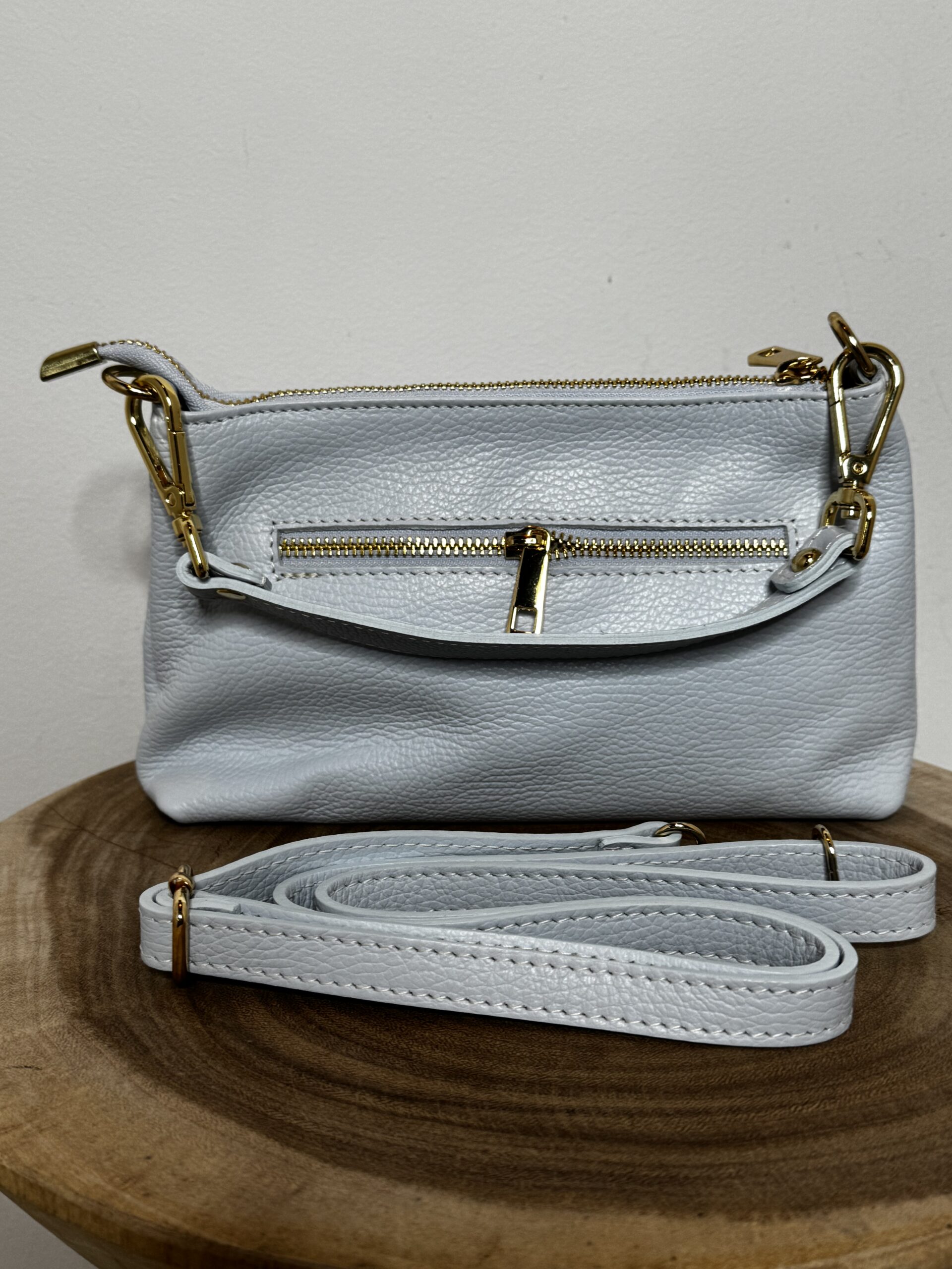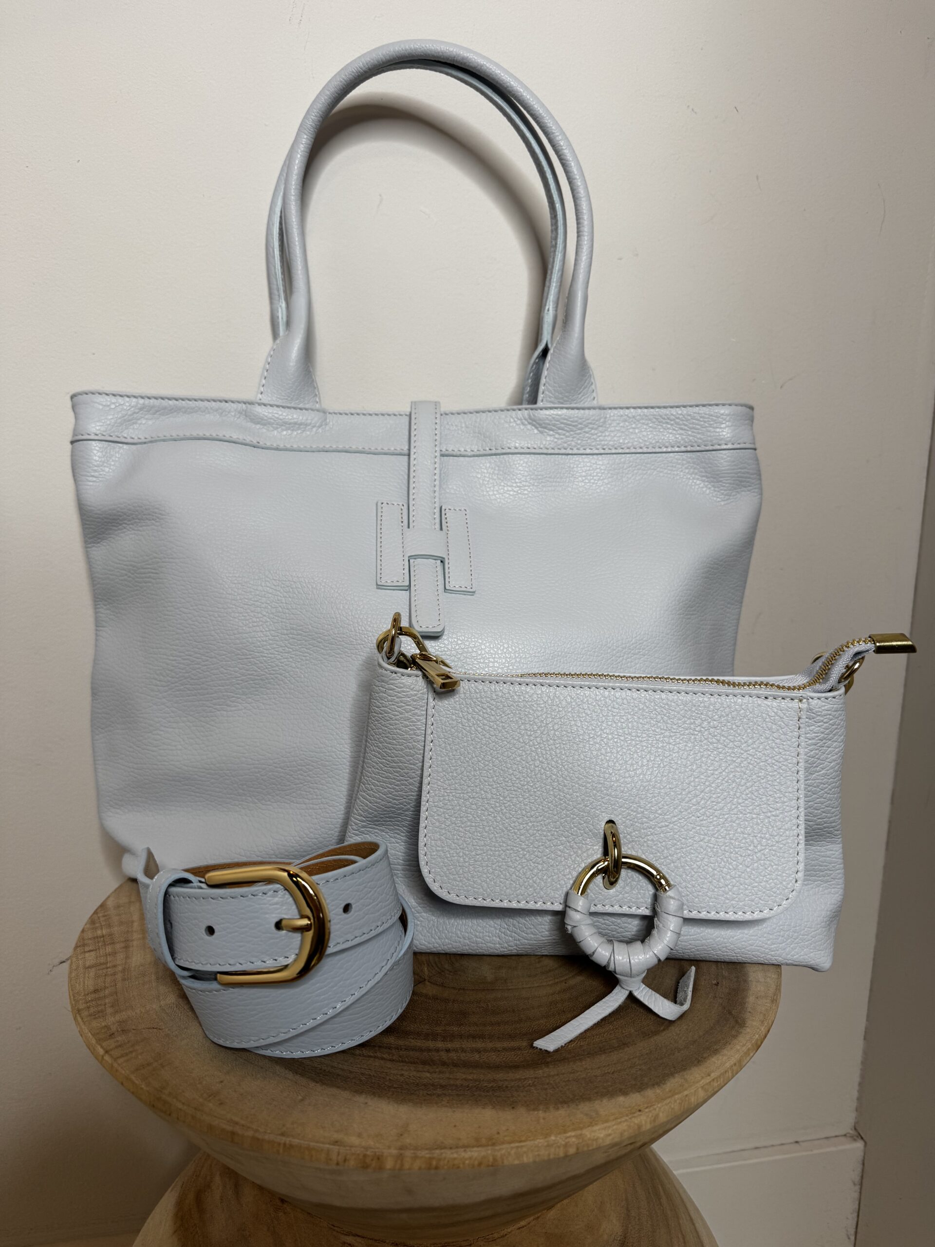 De mooie Leren Tas Cleo Licht Blauw is gemaakt van echt leer