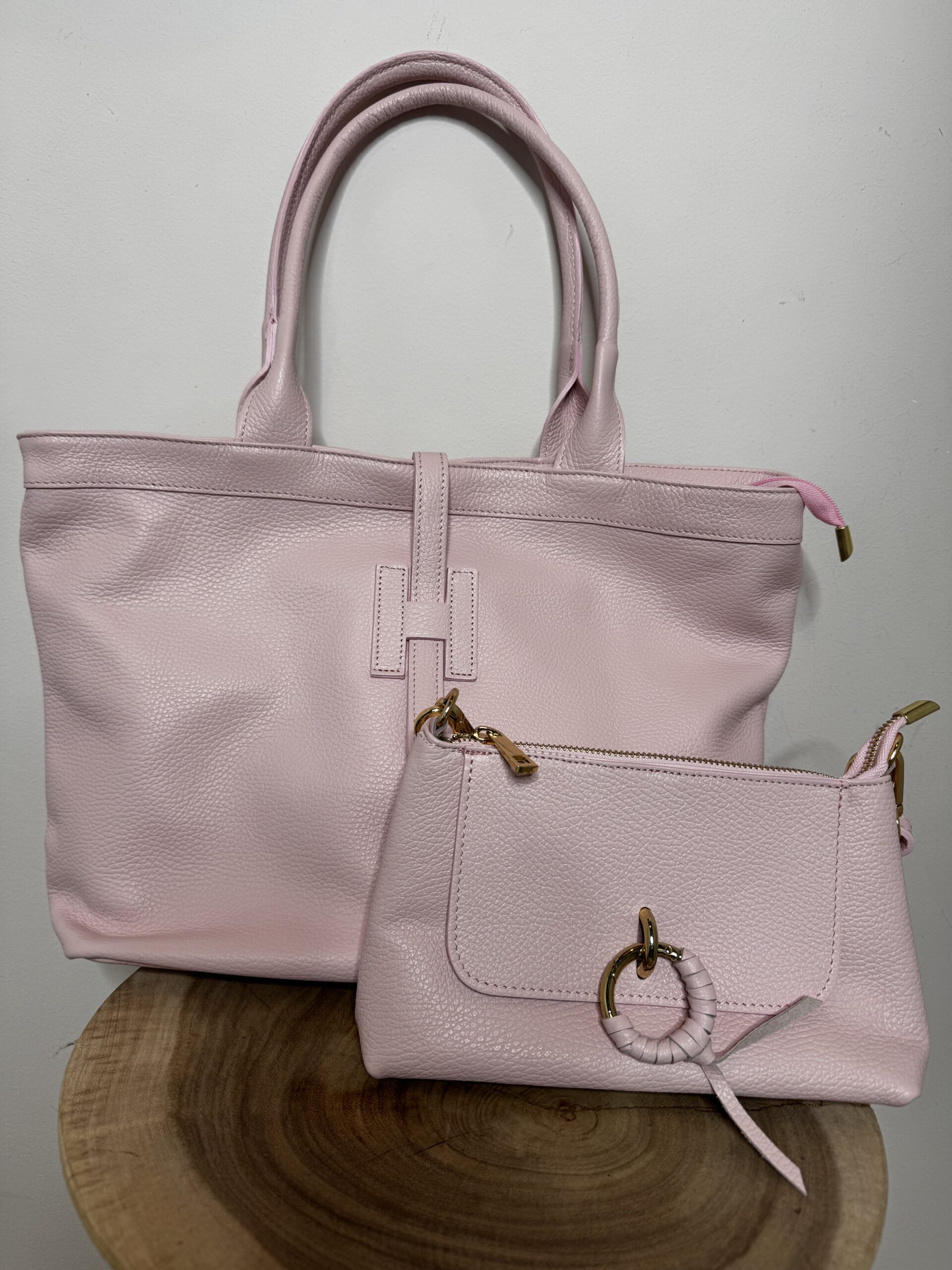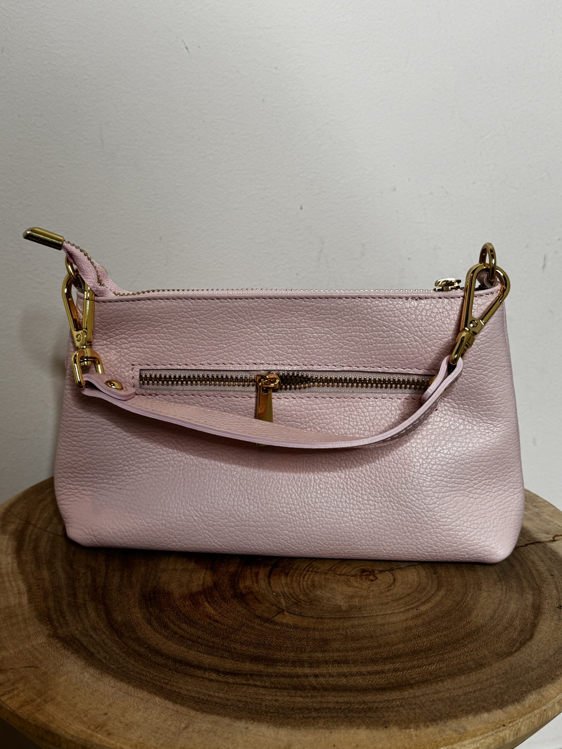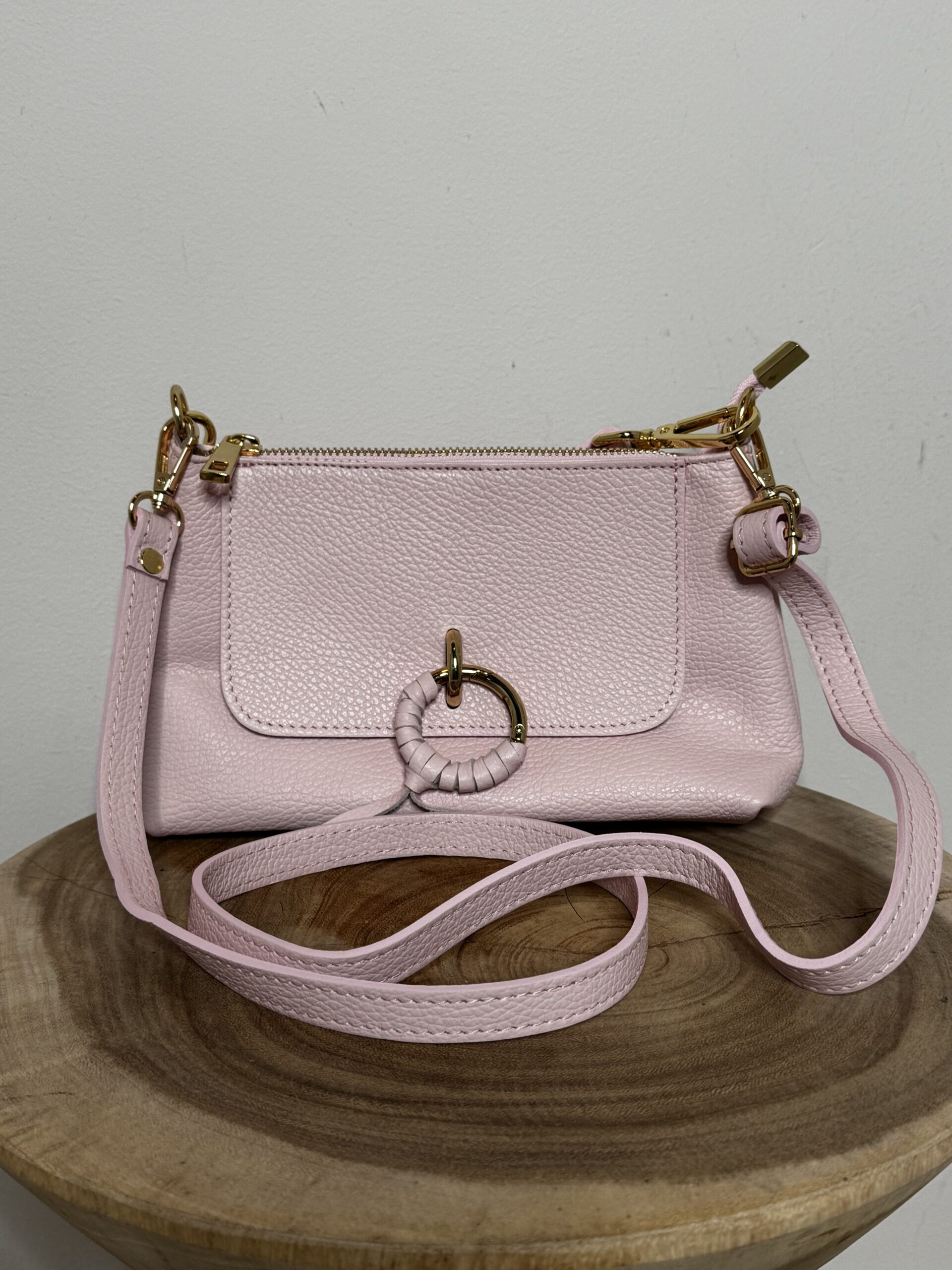 De mooie Leren Tas Cleo Roze is gemaakt van echt leer