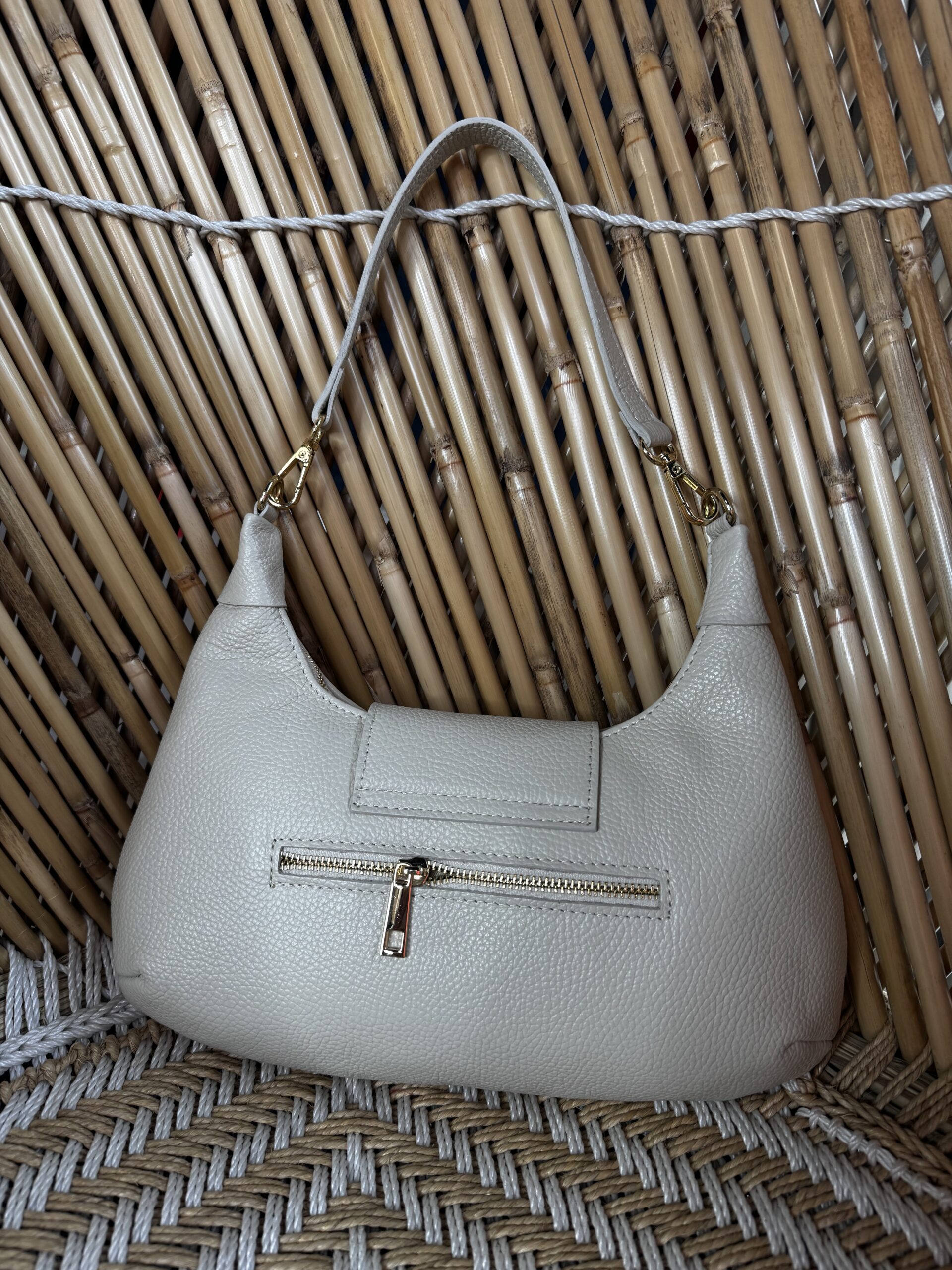De mooie Leren Tas Coline Zand is gemaakt van echt leer