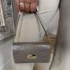 Aan de tas zit een hengsel die bestaat uit een ketting in goud.