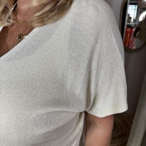 Deze leuke top met mooie glans is heel makkelijk te combineren