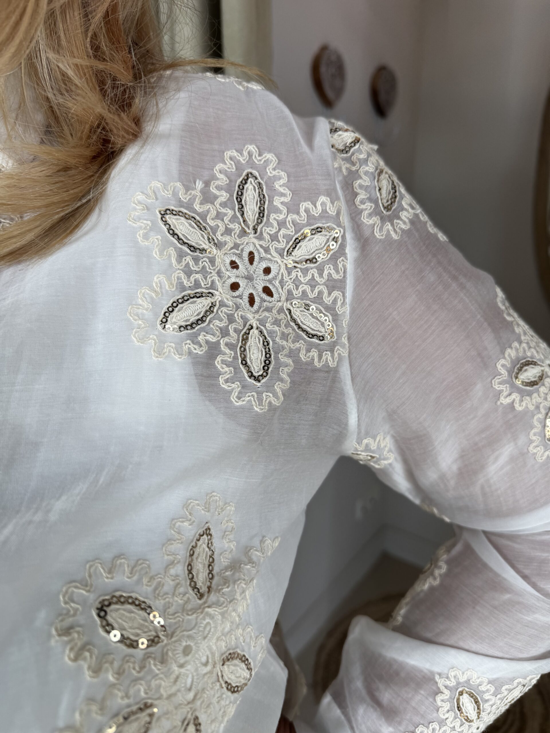 Lyocell Blouse 50320 Crème met Pailletjes