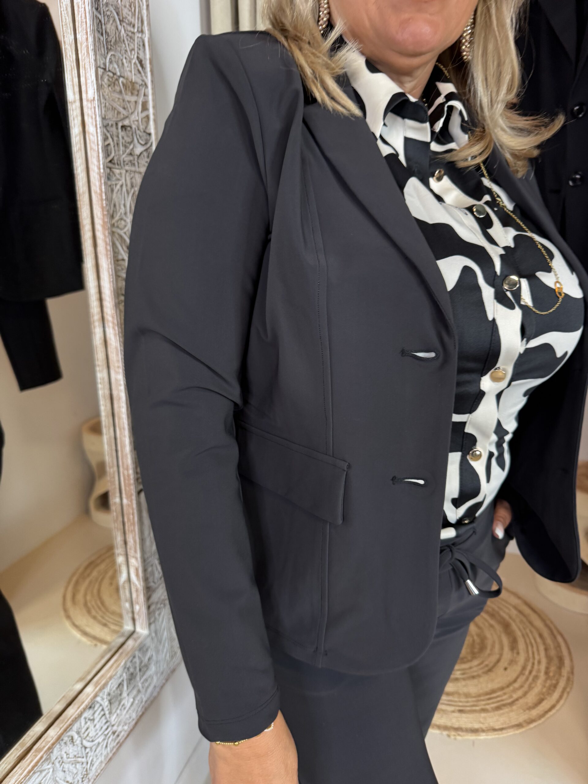We hebben deze blazer in deze versie en een iets langere, allemaal zolang de voorraad strekt