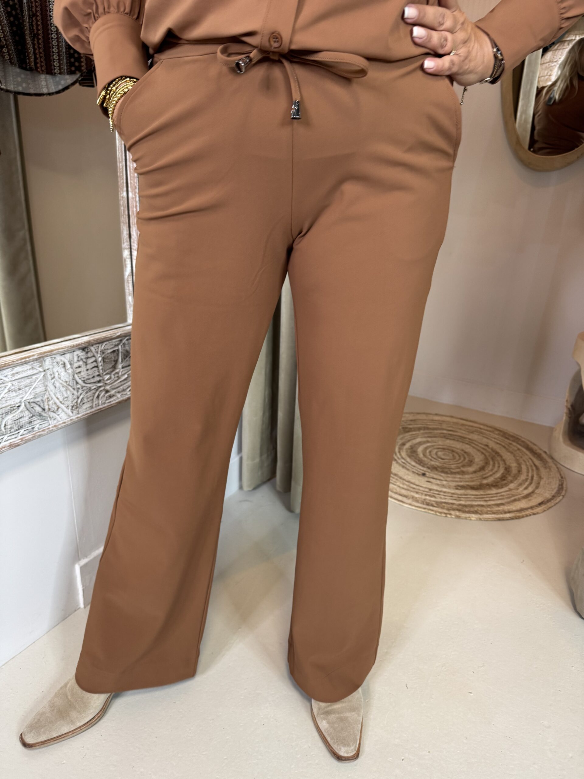 Deze Mi Piace Bonded Travelstof Broek 202631 Caramel van het merk Mi Piace is gemaakt in een dikkere, nieuwe kwaliteit dan de andere broeken van dit merk