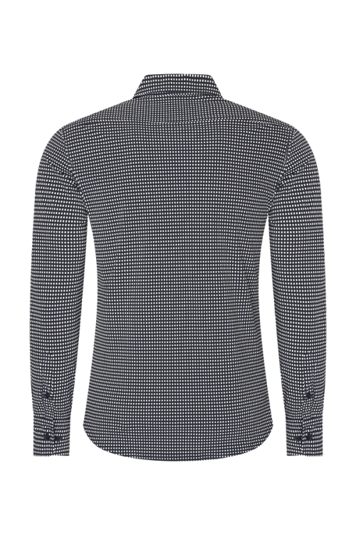 Dit mooie Mi Piace Heren Travelstof Overhemd 202010 Check Print Off-White/Donker Blauw is gemaakt van de bekende travelkwaliteit van Mi Piace
