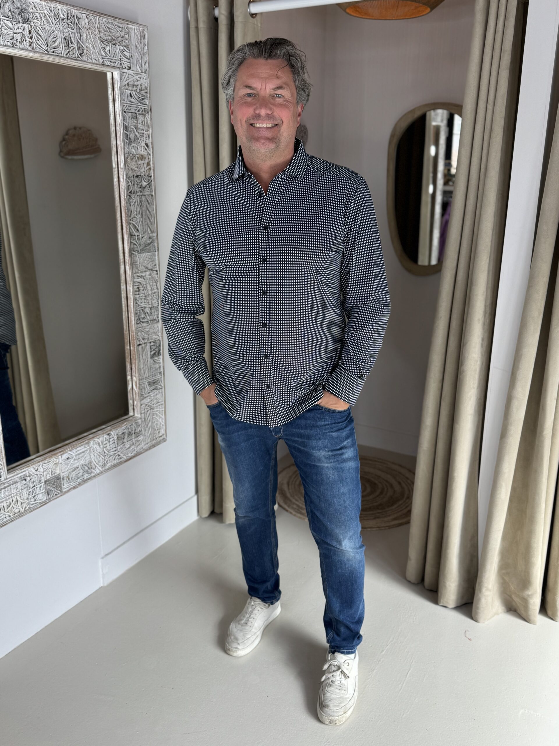 Barry draagt van dit overhemd de XXL, heeft op dit moment heren confectie maat 52-54 en is 185