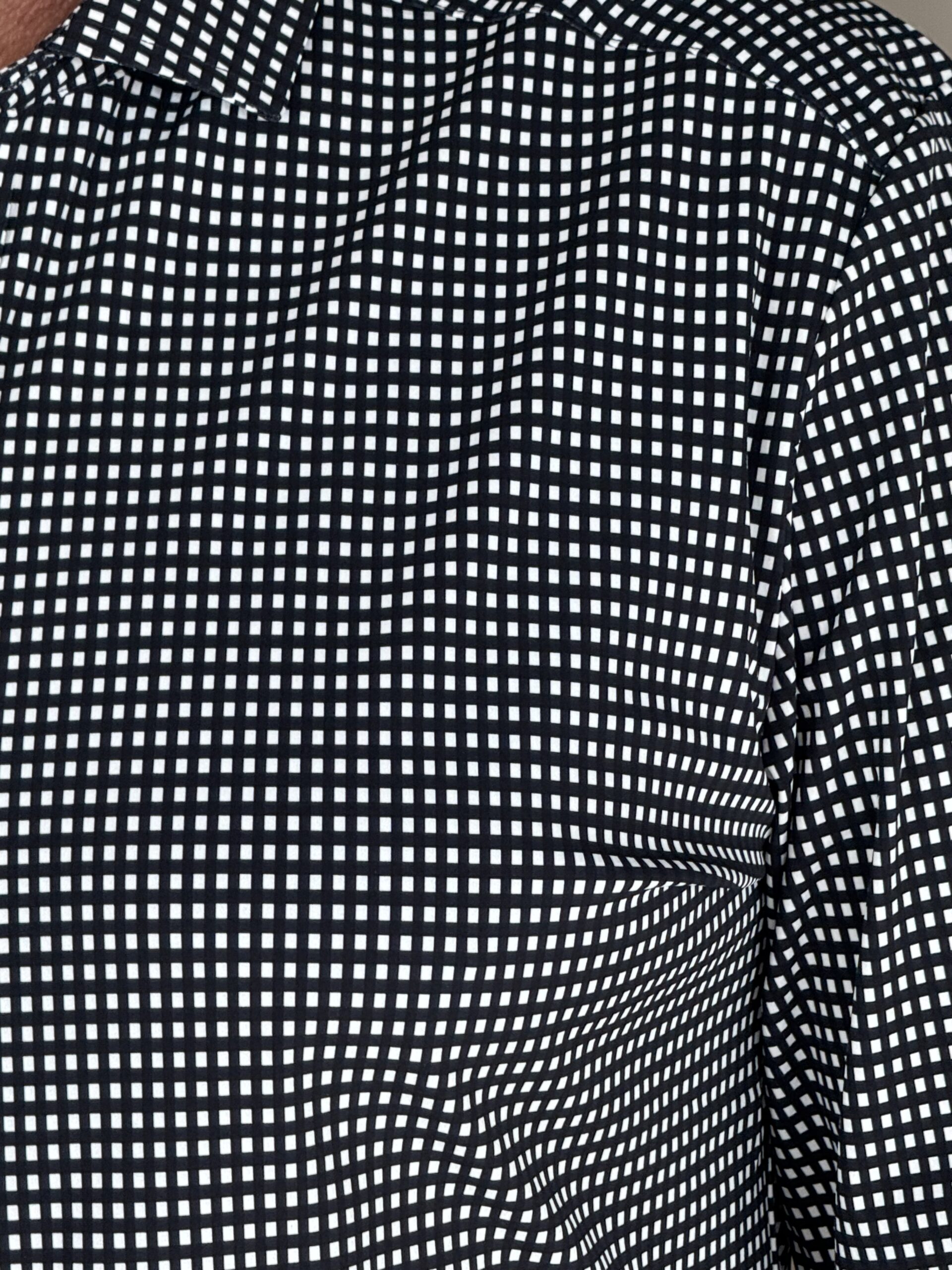 Mi Piace Heren Travelstof Overhemd 202010 Check Print Off-White/Donker Blauw, eindelijk weer een nieuwe print in een blouse in de favoriete stof van veel vrouwen voor heren!