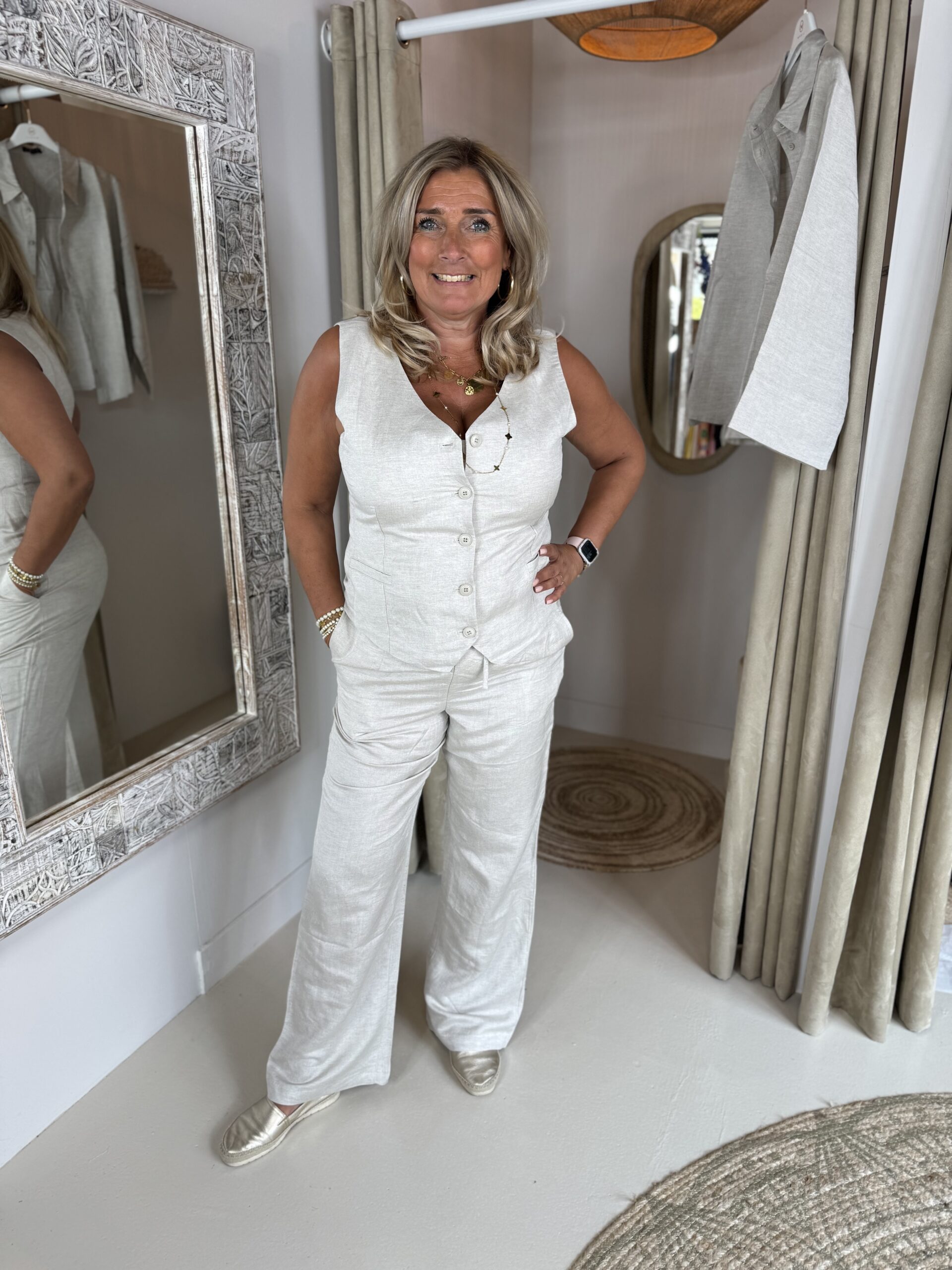 Mi Piace Linnen Gilet 2020027 Beige