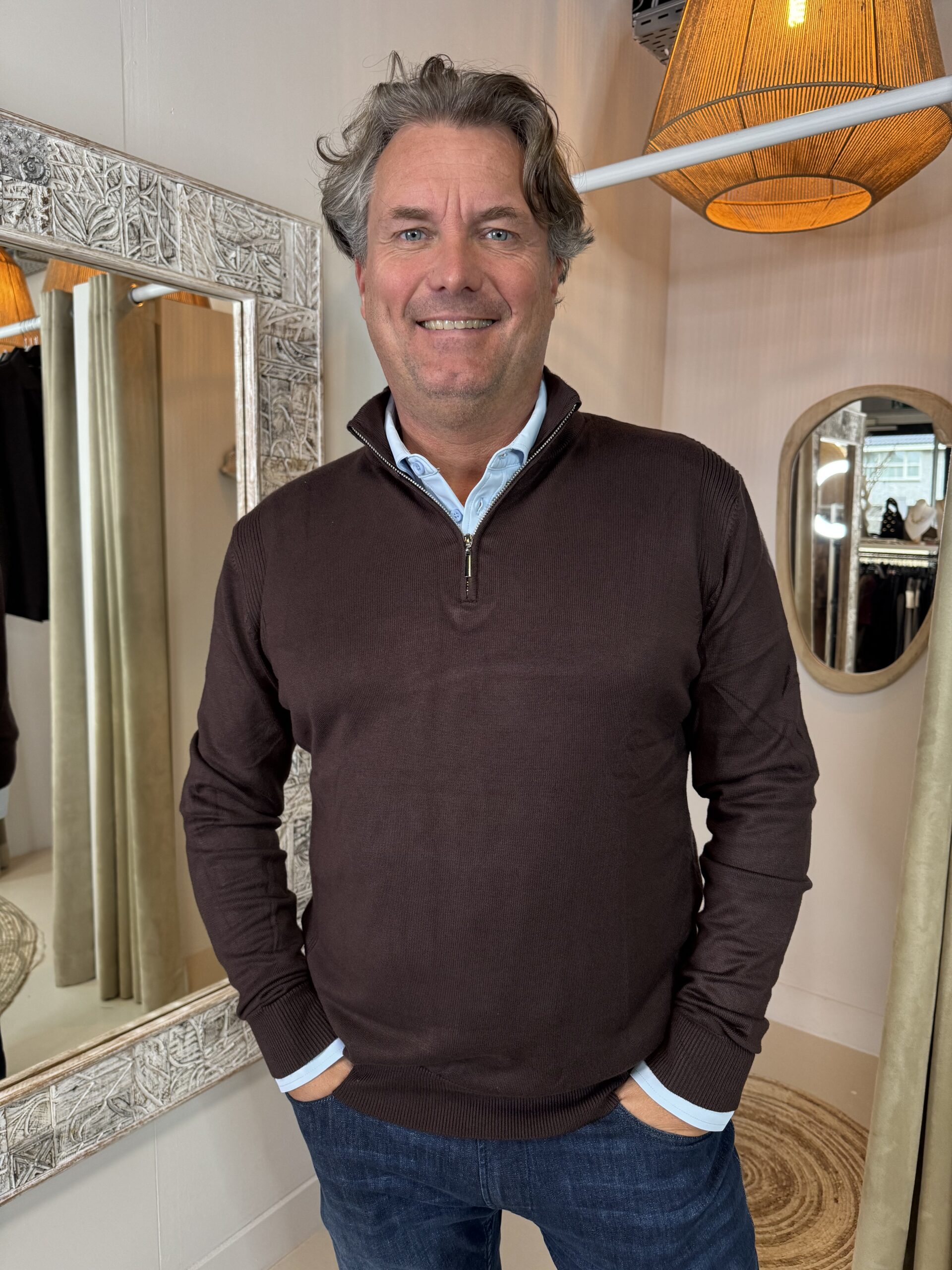 Mi Piace Pullover Zip 202017 Espresso Voor HEREN, is een mooie pullover trui met rits