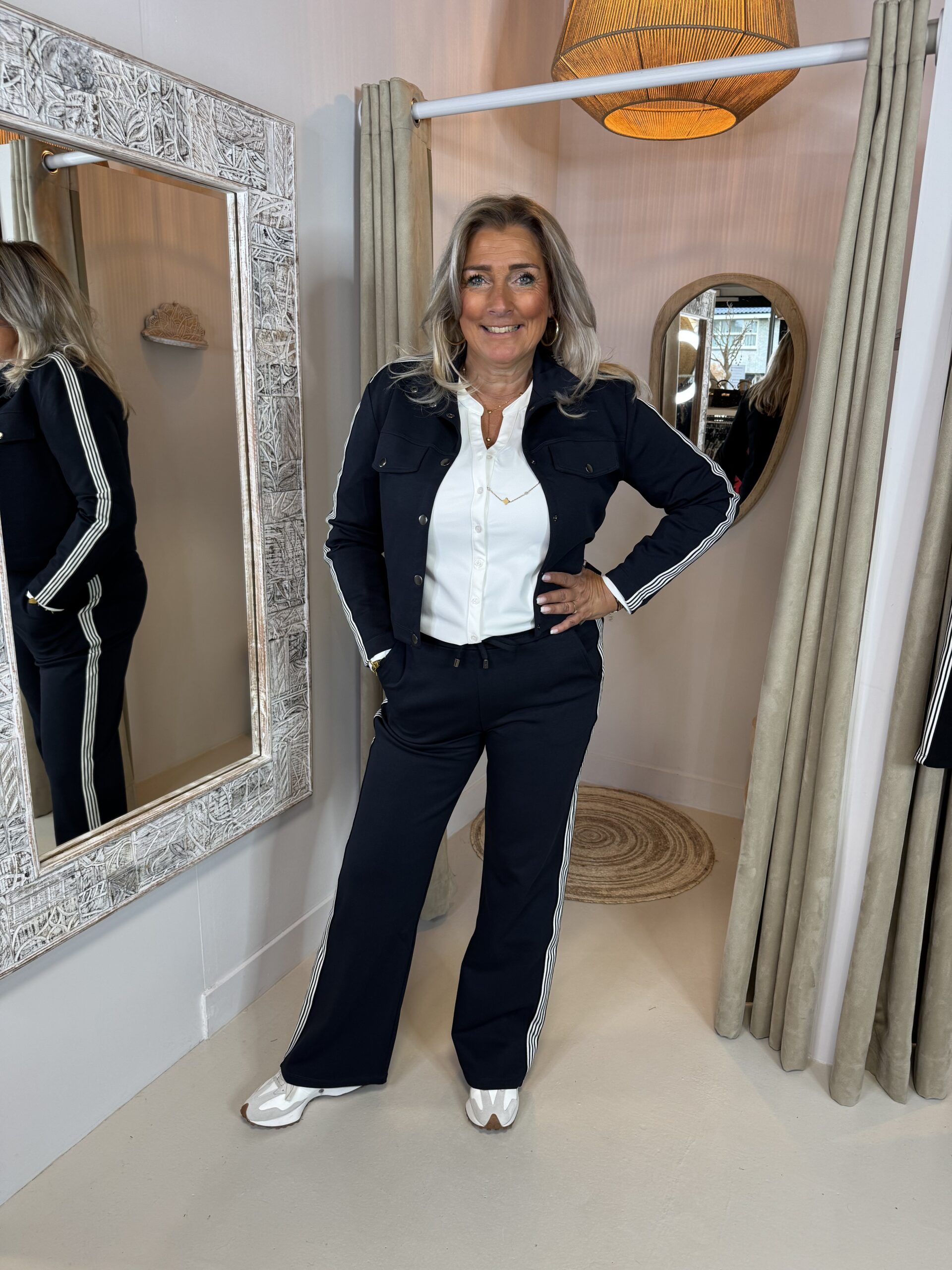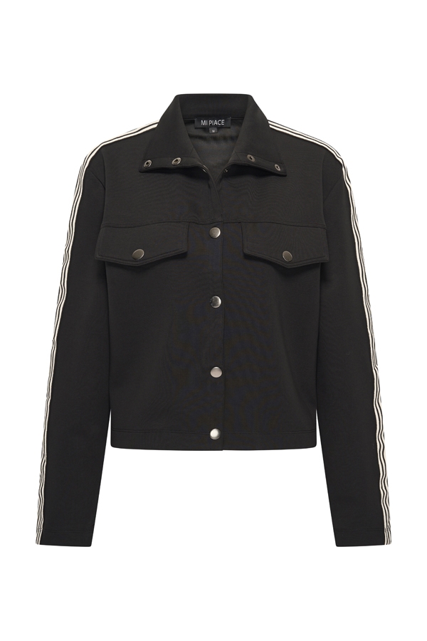 Ervaar de ultieme combinatie van stijl en comfort met de Mi Piace Sweat Jacket 20200104 Contrast Stripe Zwart