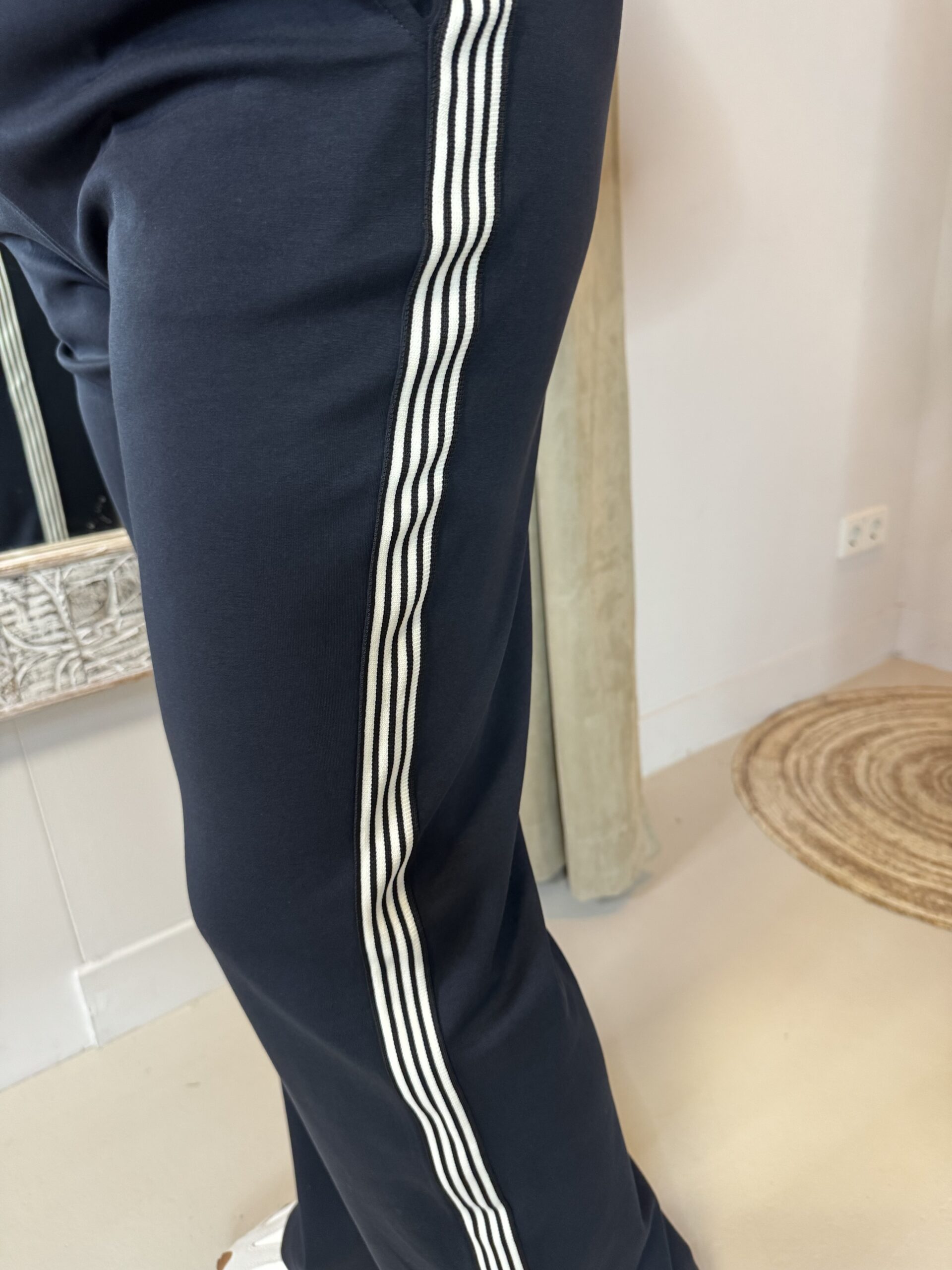 Ervaar de ultieme combinatie van stijl en comfort met de Mi Piace Sweat Trousers 202647 Contrast Stripe Donker Blauw