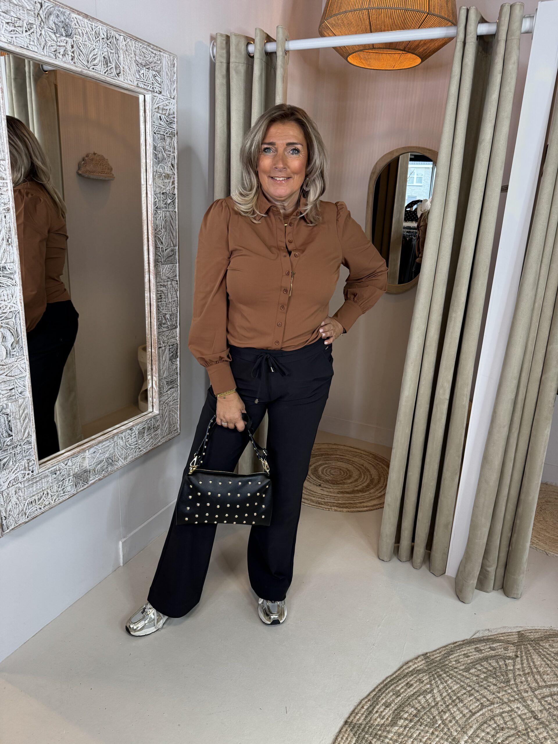 Mi Piace Travelstof Blouse 202037– Caramel