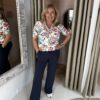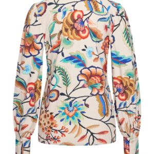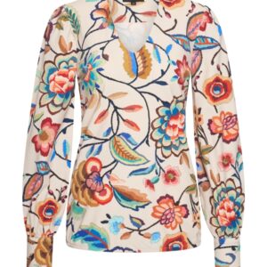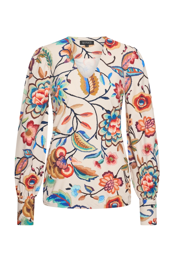 Mi Piace Travelstof Blouse 202226 Multi Colour Embroidered Bloom Print van Mi Piace is een mooie top van dit merk in een nieuwe print.
