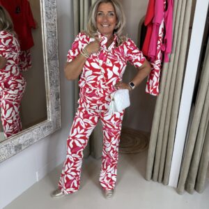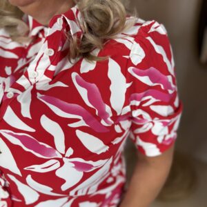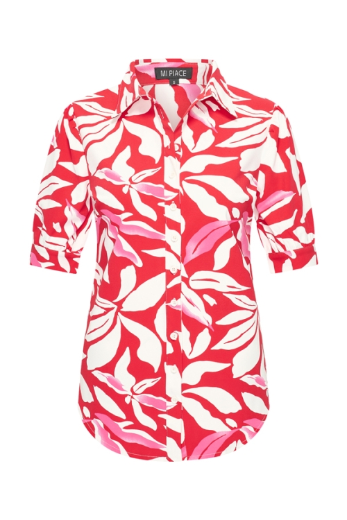 Mi Piace Travelstof Blouse 202270 Flower Print Red|Off-White