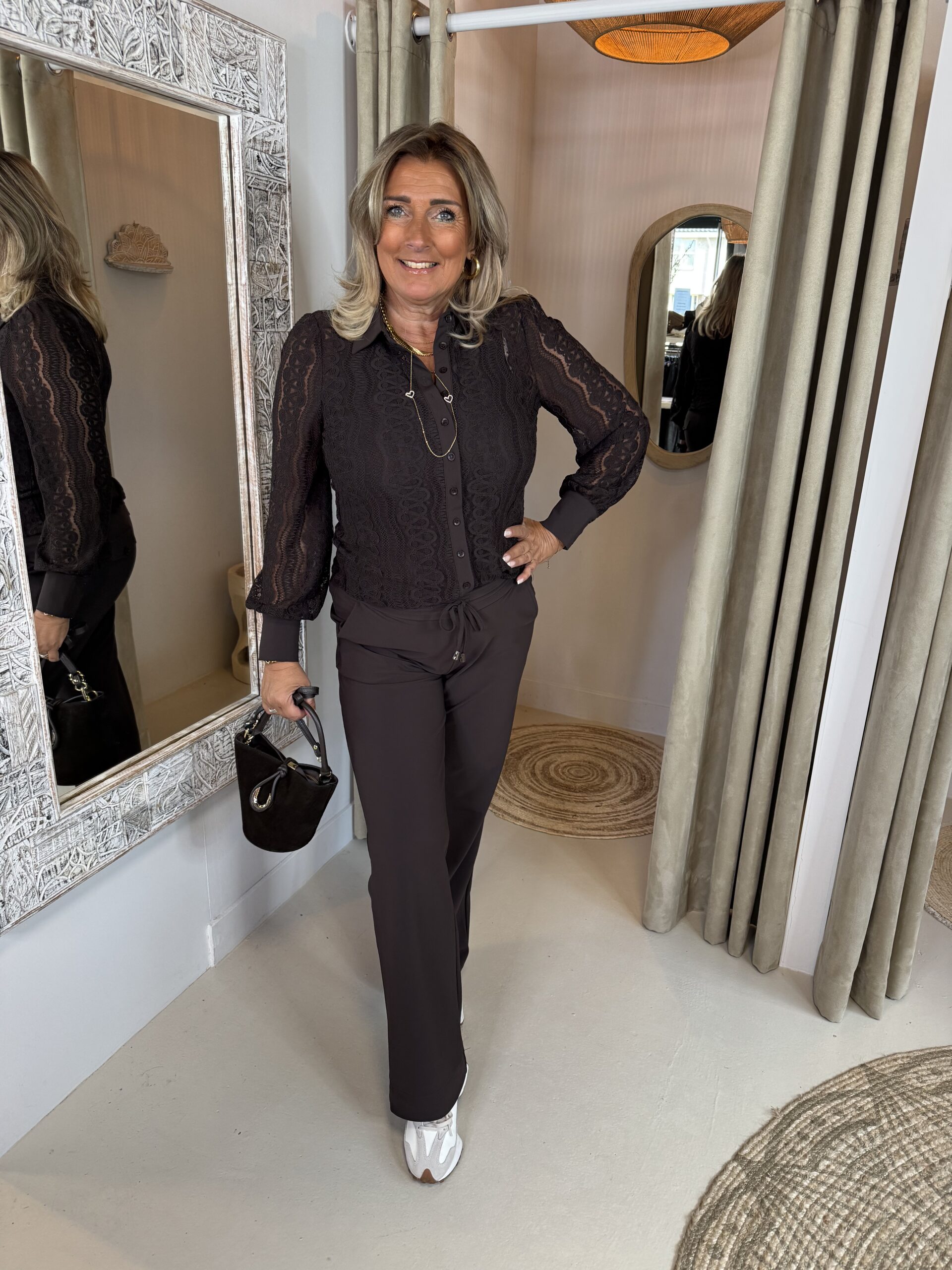 Mi Piace Travelstof Blouse 202352 Kant Espresso