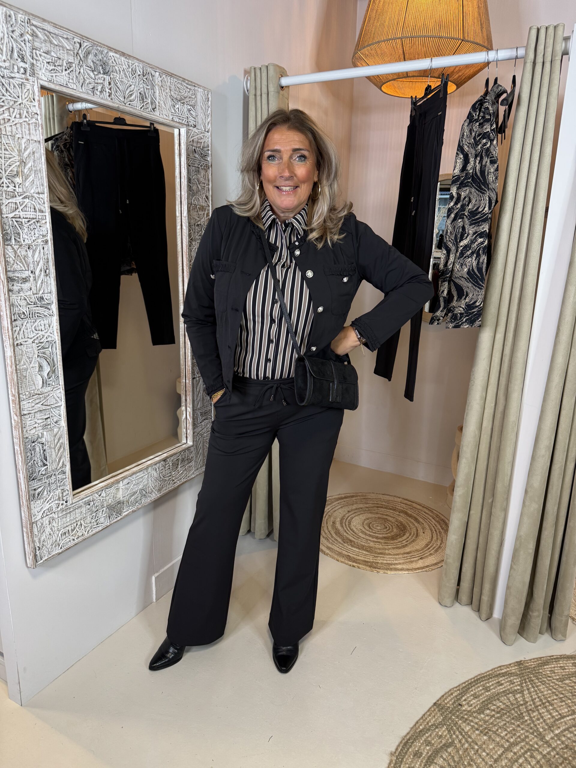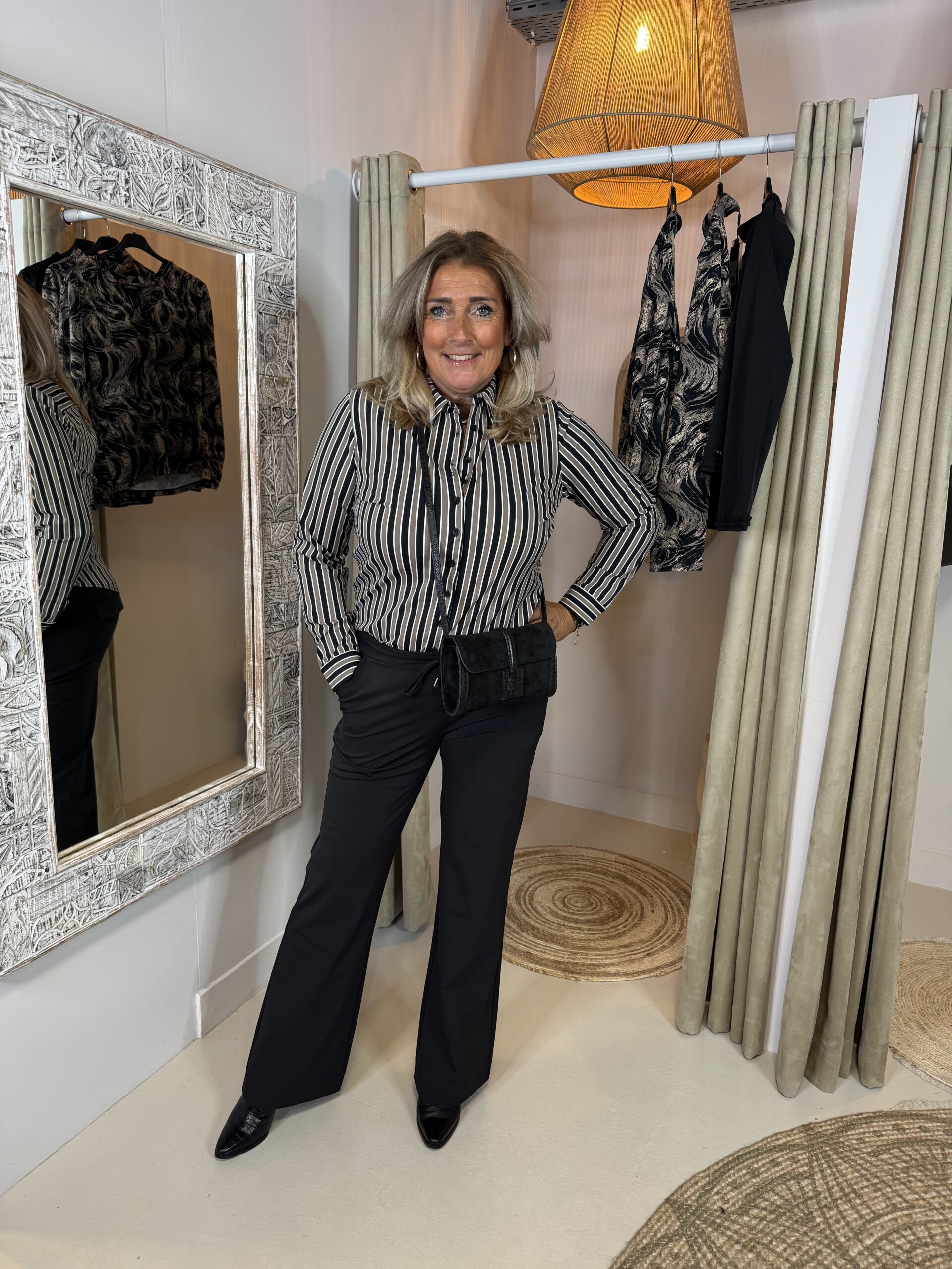 ✔ Voordelen van deze Mi Piace Travelstof Blouse 202711 Stripe Print Black|Taupe