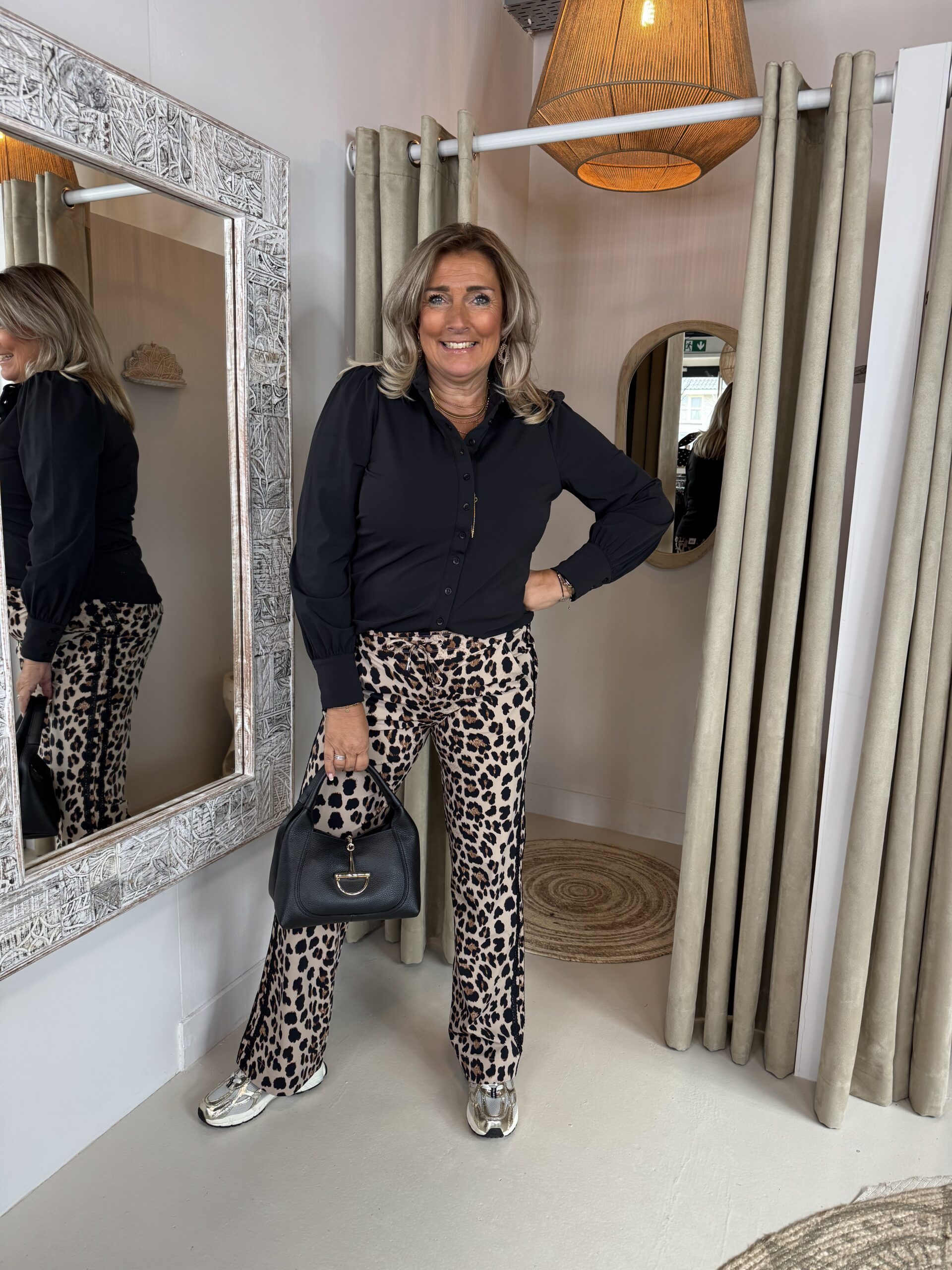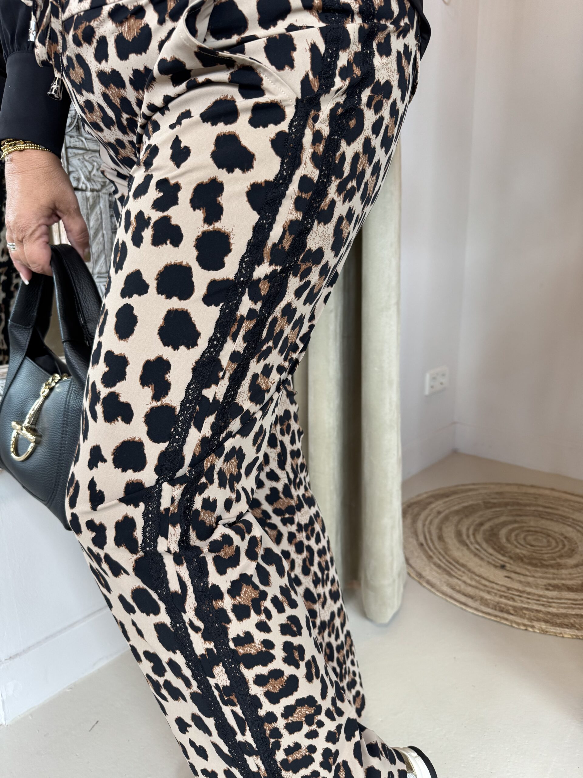 Mi Piace Travelstof Broek 202704 Leopard Print Kanten Bies