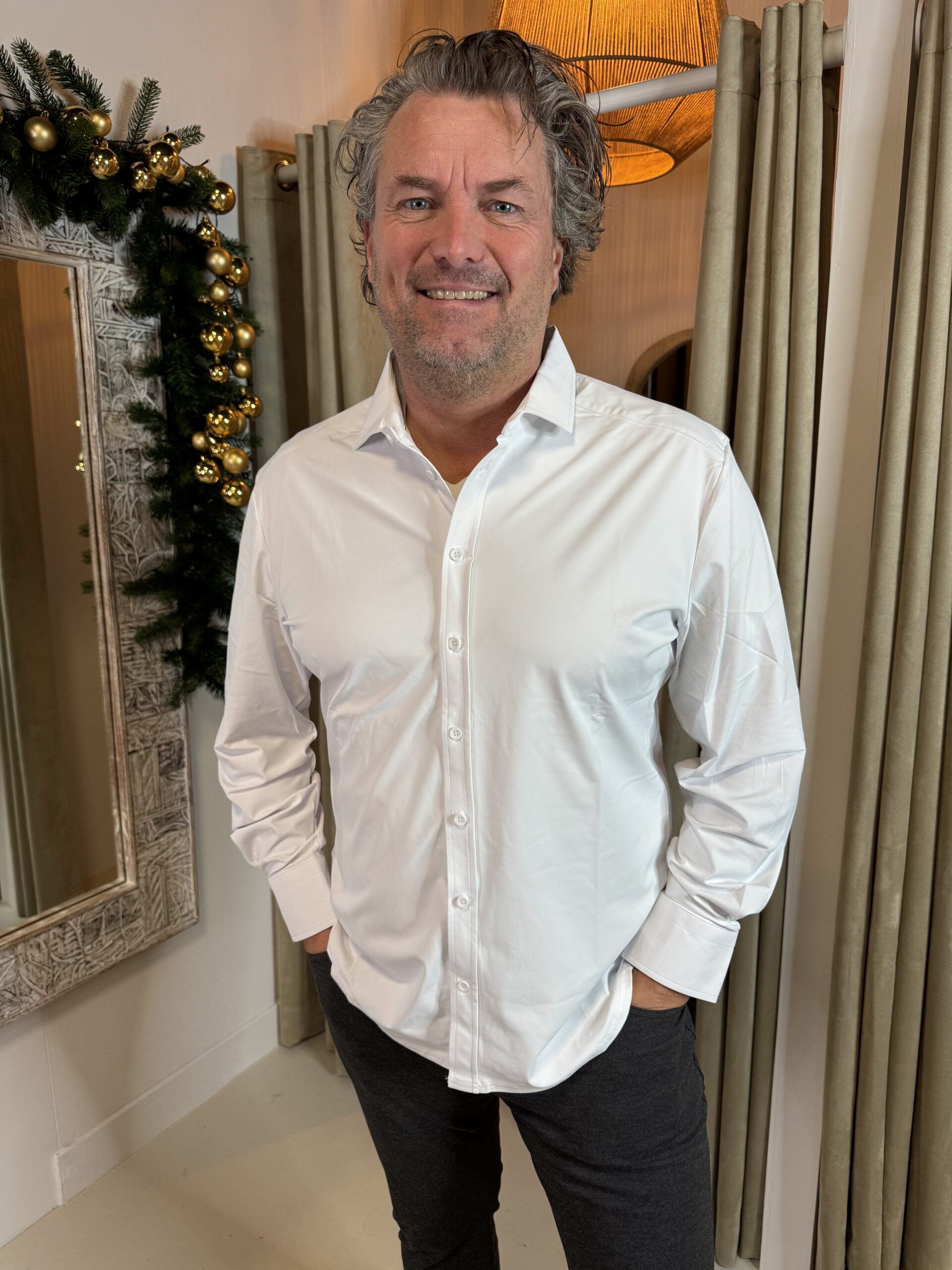 Mi Piace Travelstof Overhemd 202010 White Voor HEREN