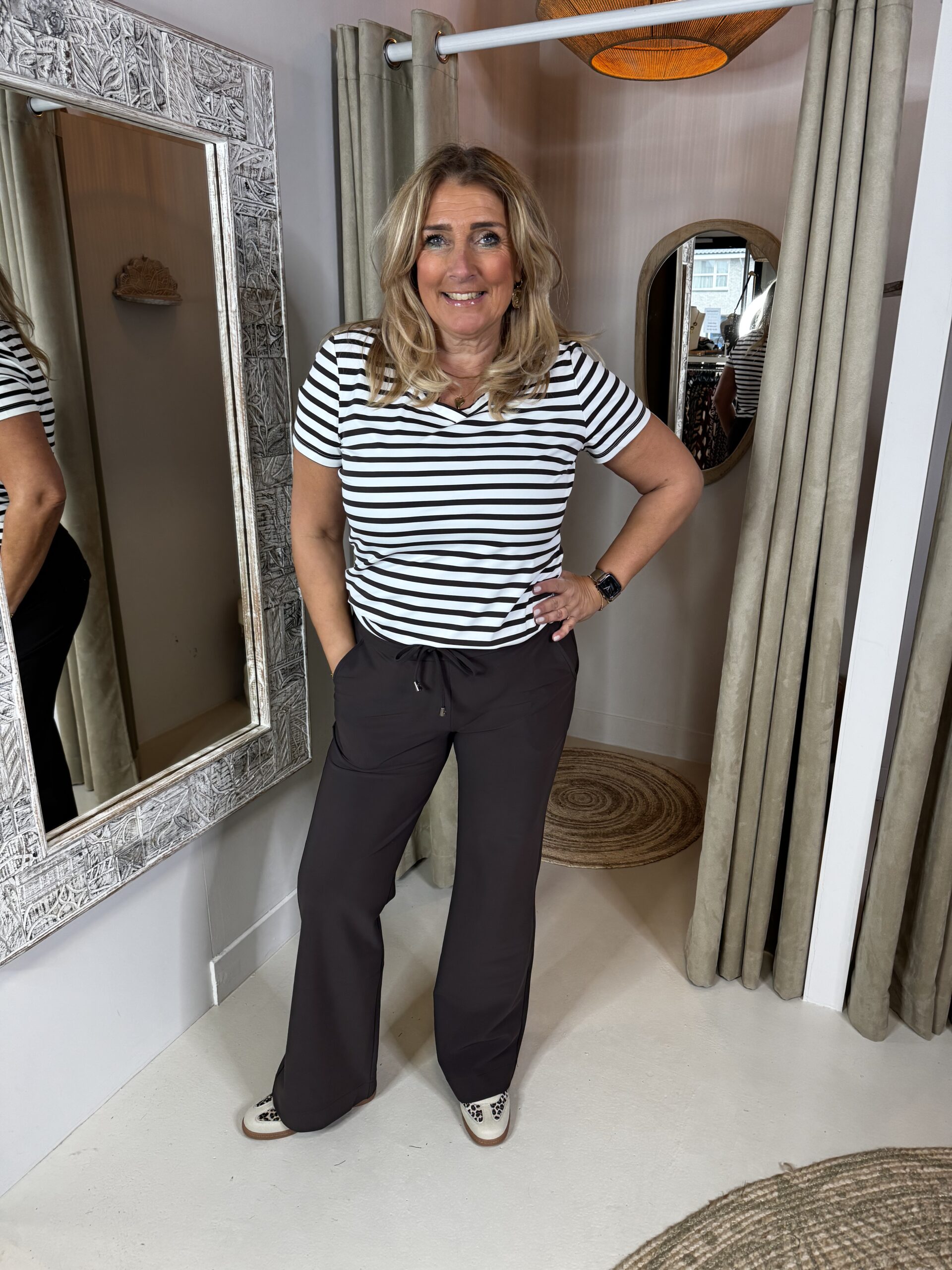 Mi Piace Travelstof Shirt 202080 Espresso/Off-White Stripe
