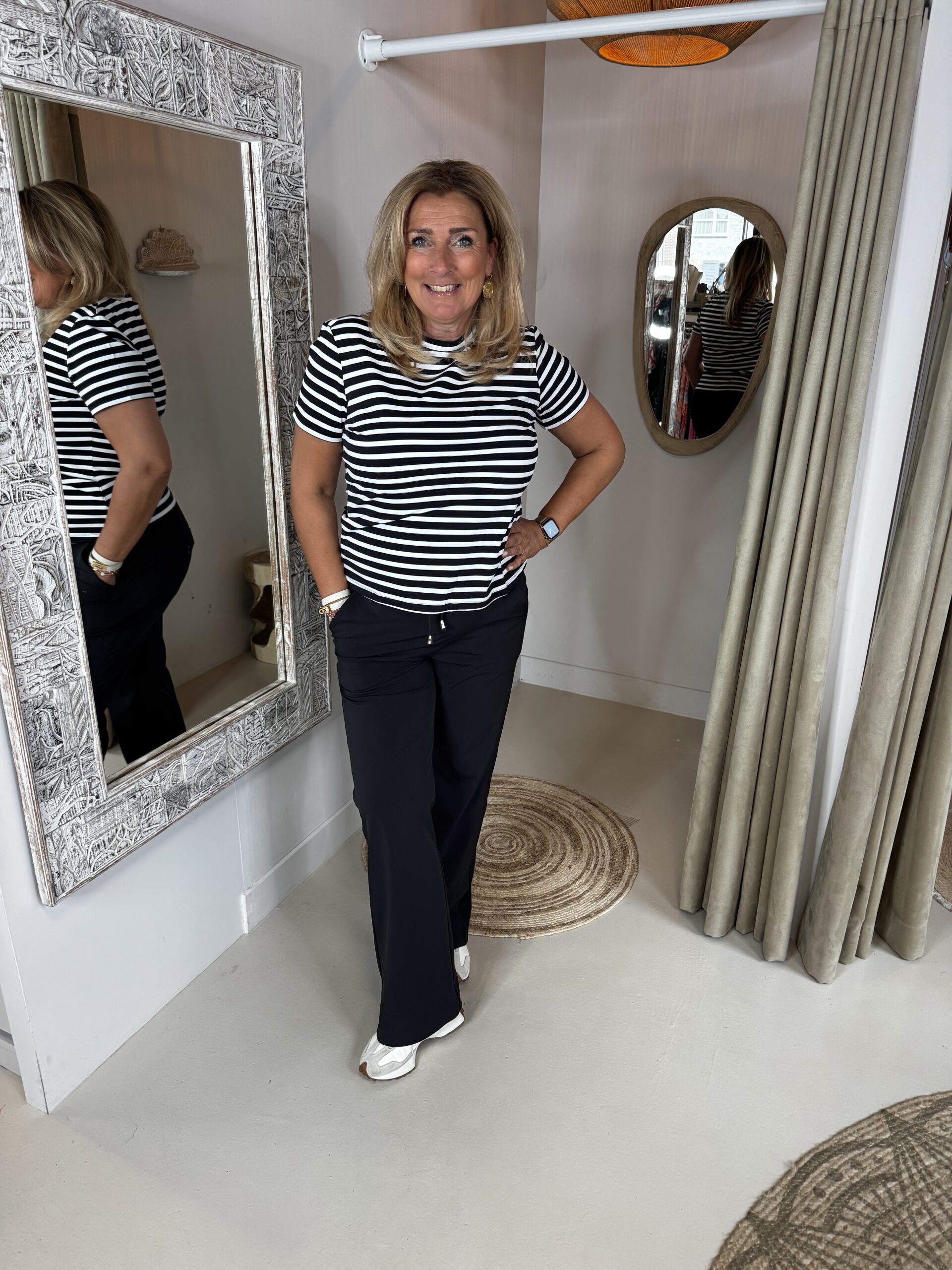 Mi Piace Travelstof Shirt 202185 Streep Zwart/Off-White