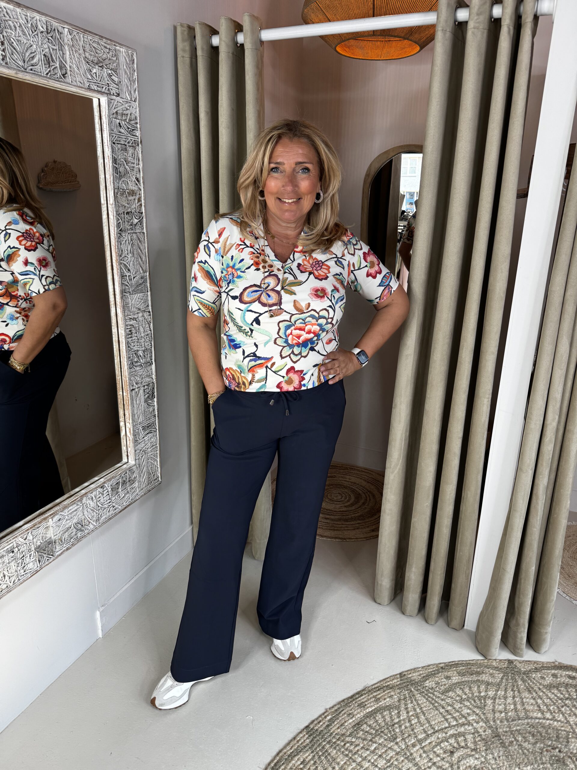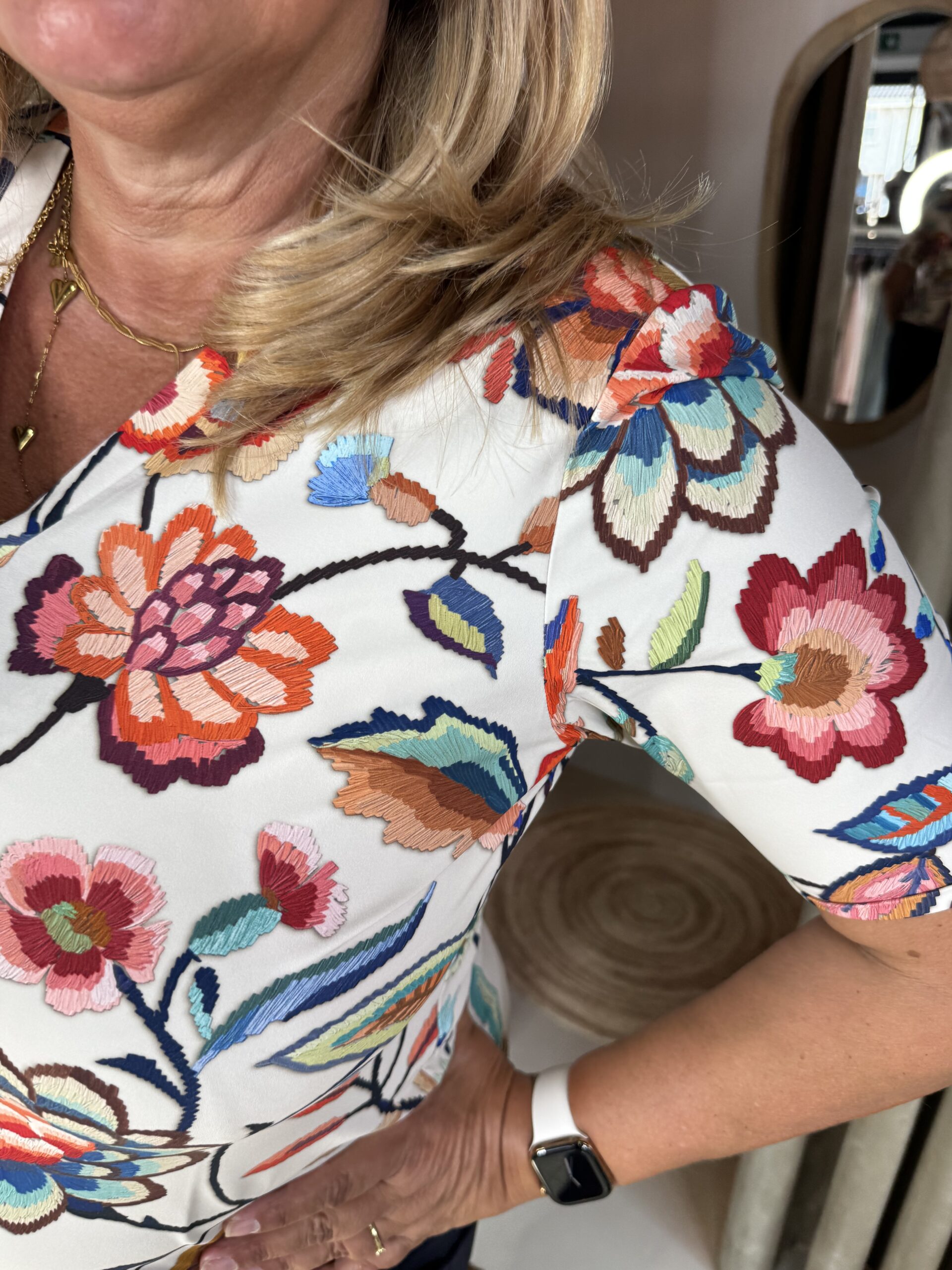 Mi Piace Travelstof Shirt 202271 Multi Colour Embroidered Bloom Print