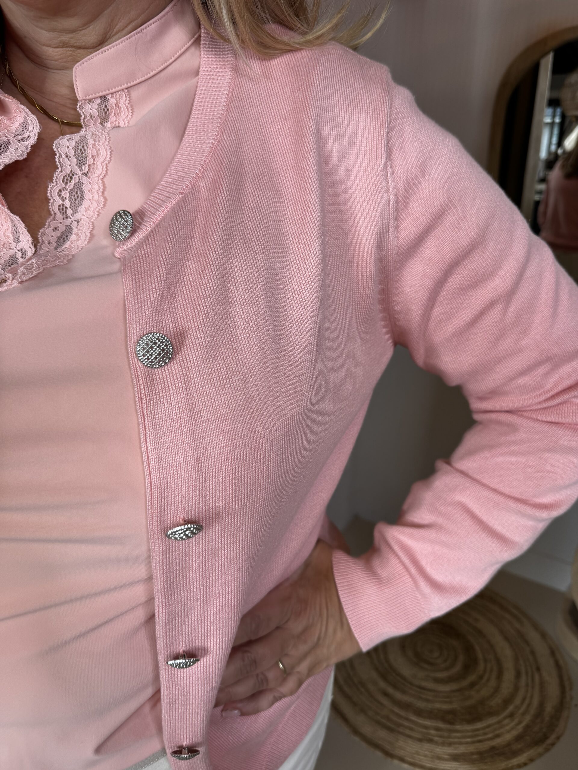 Mi Piace Vest 202789 Mellow Rose is een heerlijk niet te dun, niet te dik, fijngebreid vest met ronde hals en sierlijke knoopsluiting. De zachte stof en vrouwelijke kleur maken dit vest perfect voor zowel casual als geklede looks.