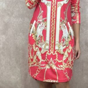De jurk loopt van onderen rond, en is achter iets langer dan voor, wat zorgt voor een zwierig en afslankend effect.