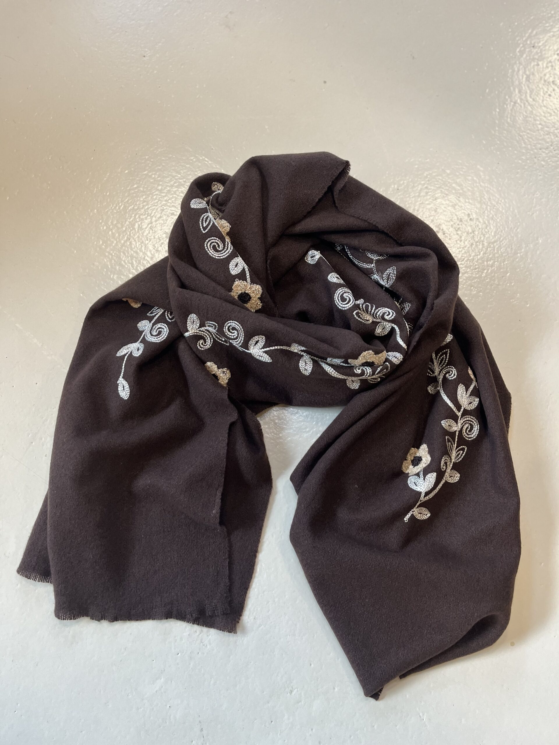 Mooie Sjaal 9485 Bruin met Borduursel
