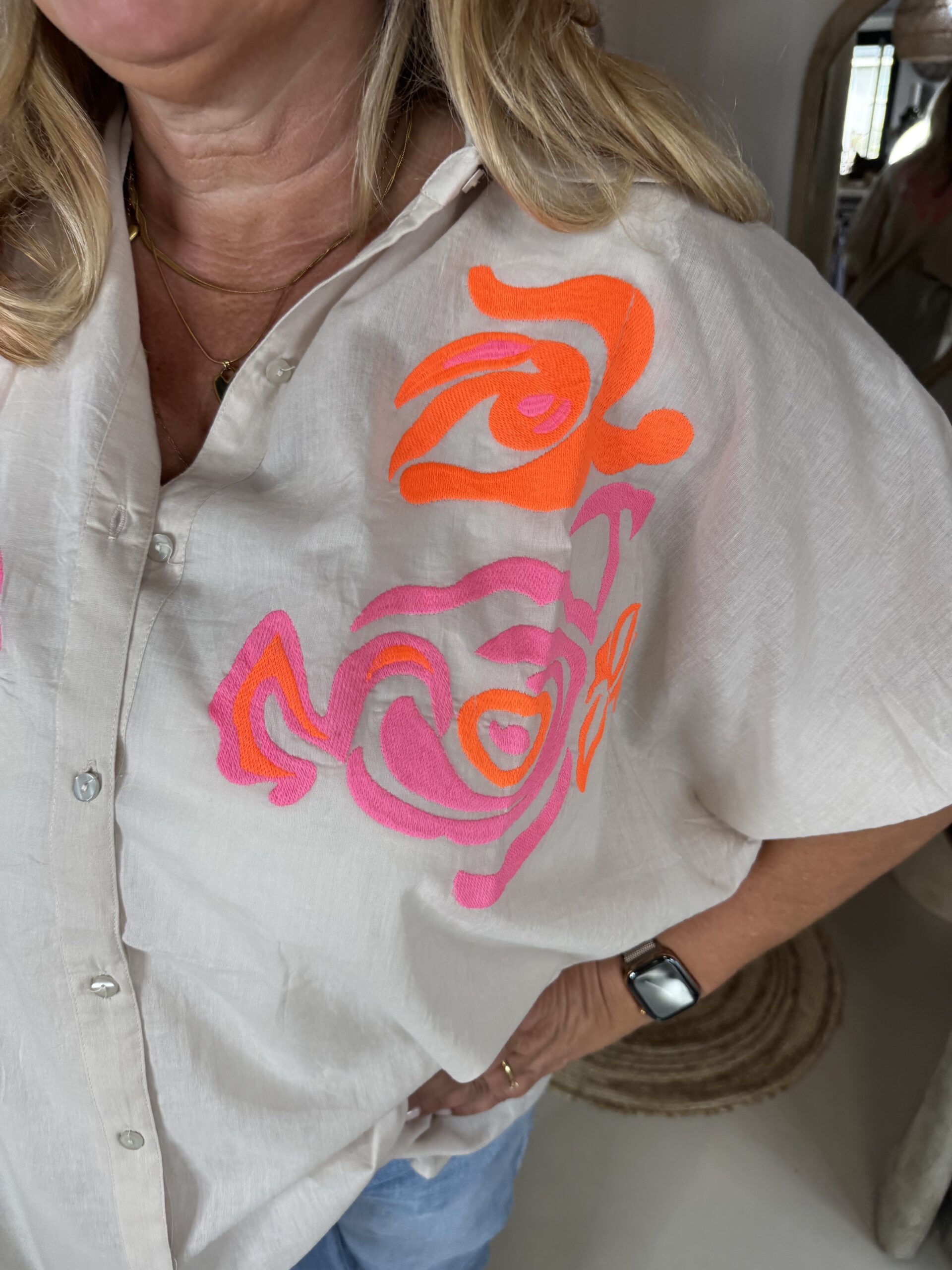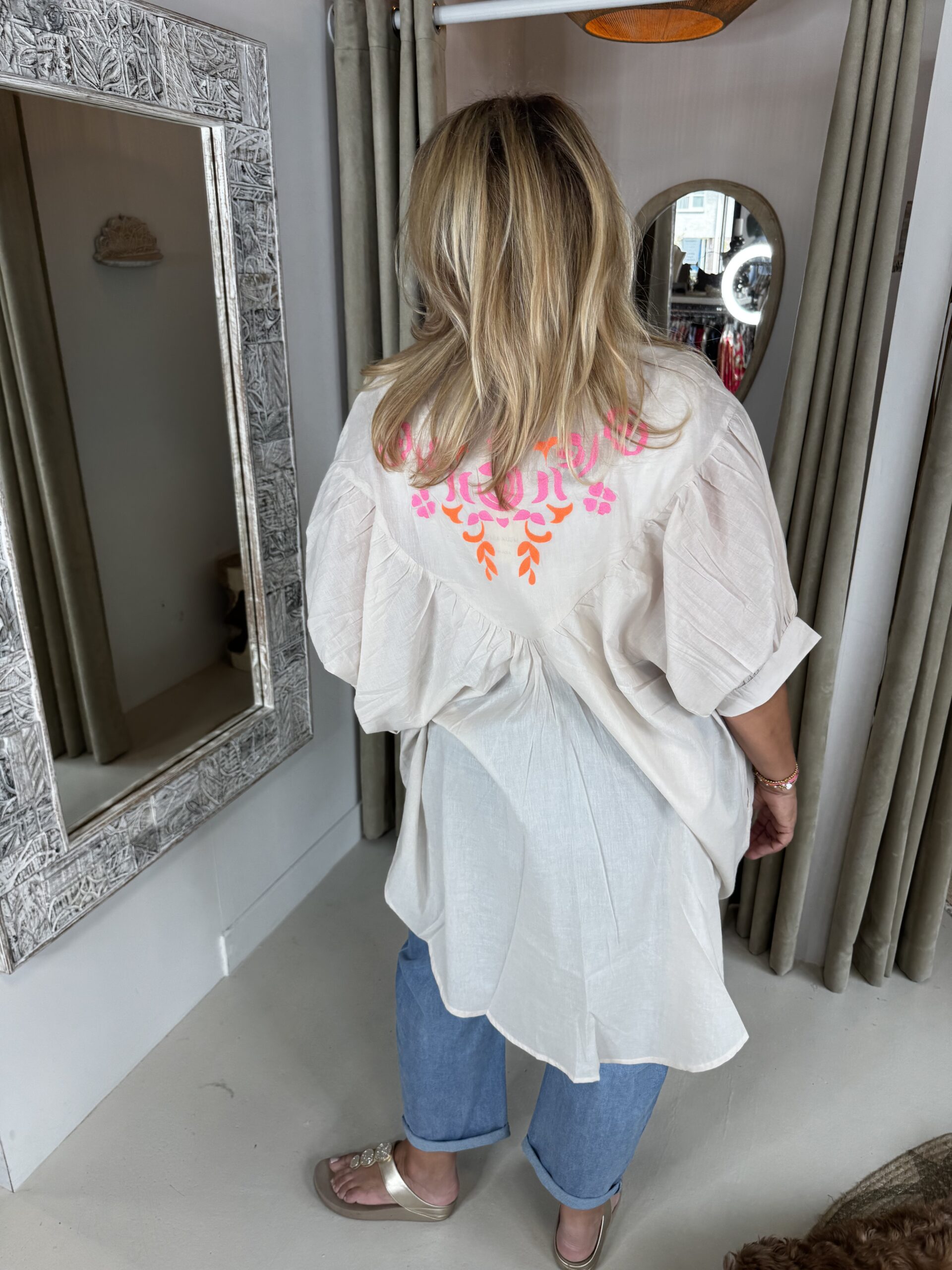 Oversized Katoenen Blouse Teresa 2648 Zand