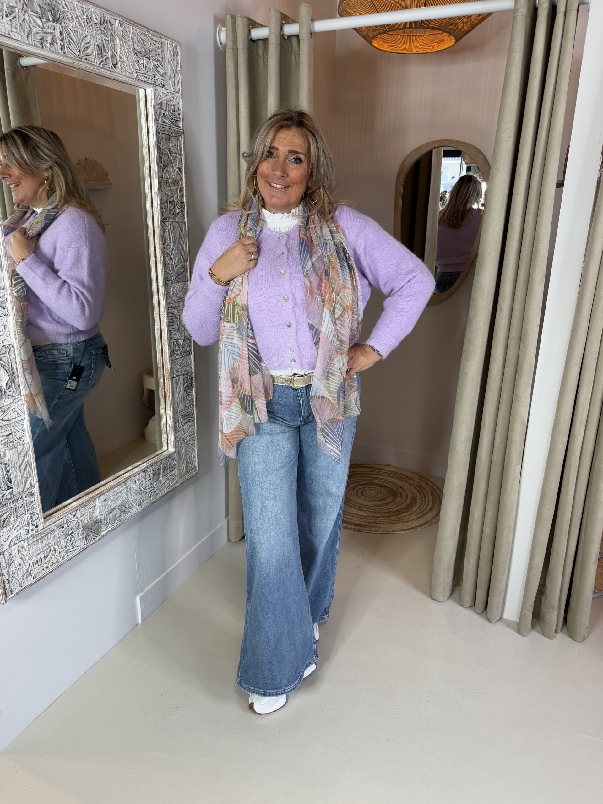 Sjaal 0907 Blaadjes Rose Pink